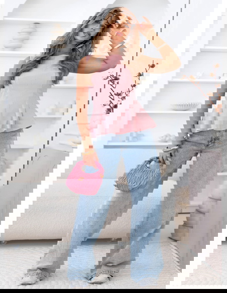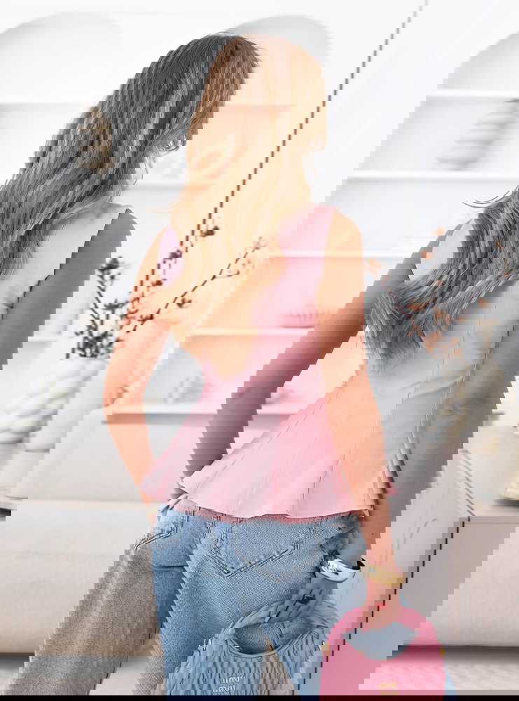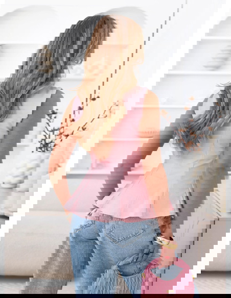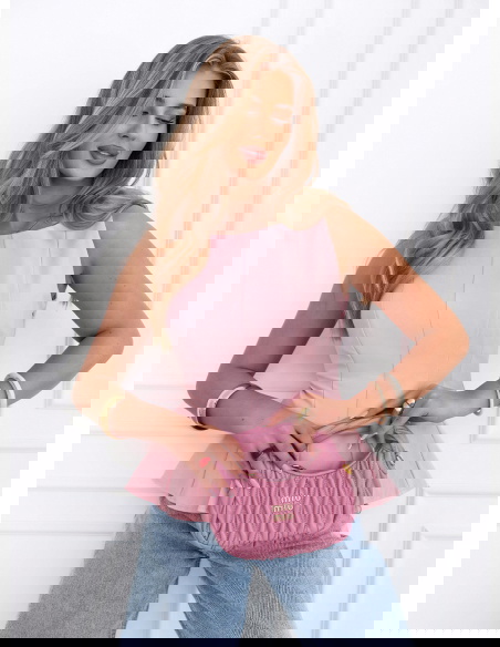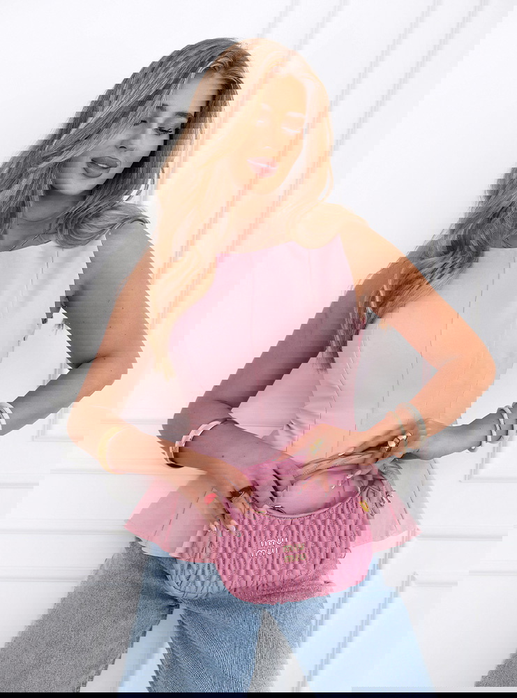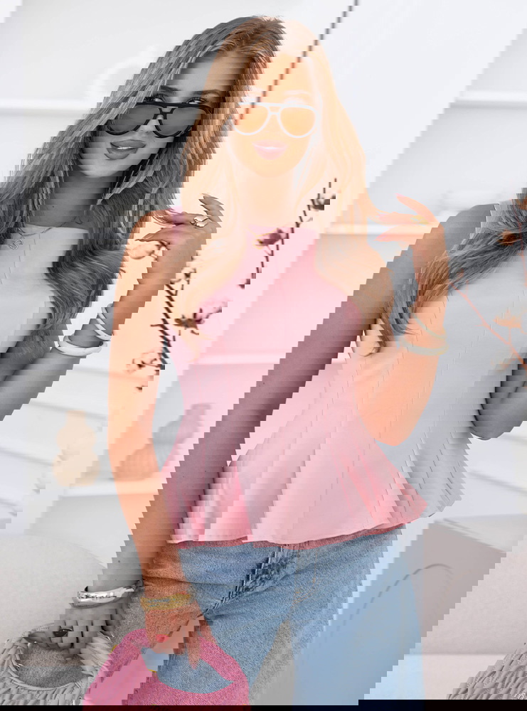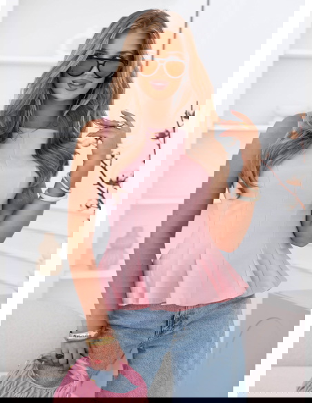 Pudrowa dopasowana bluzka z rozkloszowanym dołem Ravenlye