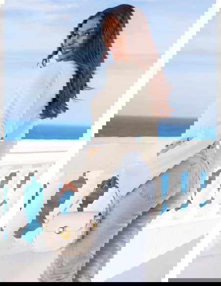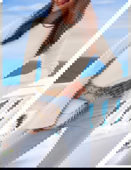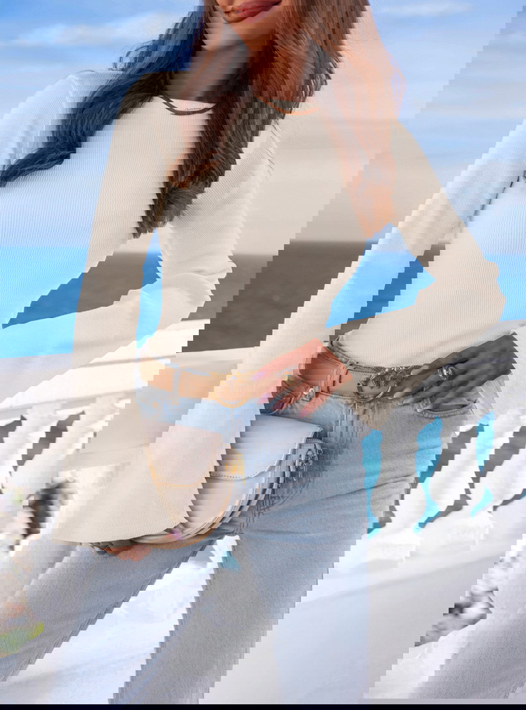 Prążkowana bluzka z rozszerzanym rękawem Joelliane - mleczna biel