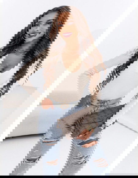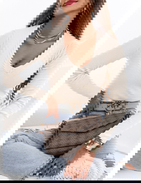 Prążkowana bluzka z dekoltem w serek Monesa - mleczna biel to dopasowany model, który świetnie podkreśla sylwetkę i wygląda bardzo kobieco. Prążkowana struktura nadaje jej charakteru i sprawia, że dobrze układa się na ciele. Dekolt w serek subtelnie eksponuje szyję i dekolt, dodając całości lekkości. Długi rękaw sprawia, że bluzka sprawdzi się nie tylko w cieplejsze dni, ale też jako baza pod warstwowe stylizacje. Fason jest dopasowany, dzięki czemu podkreśla talię i tworzy proporcjonalny look. Mleczna biel jest delikatna i uniwersalna, łatwo dopasujesz ją do wielu stylizacji. To model, który wygląda dobrze zarówno solo, jak i pod marynarką. Idealna baza do codziennych i bardziej dopracowanych outfitów.