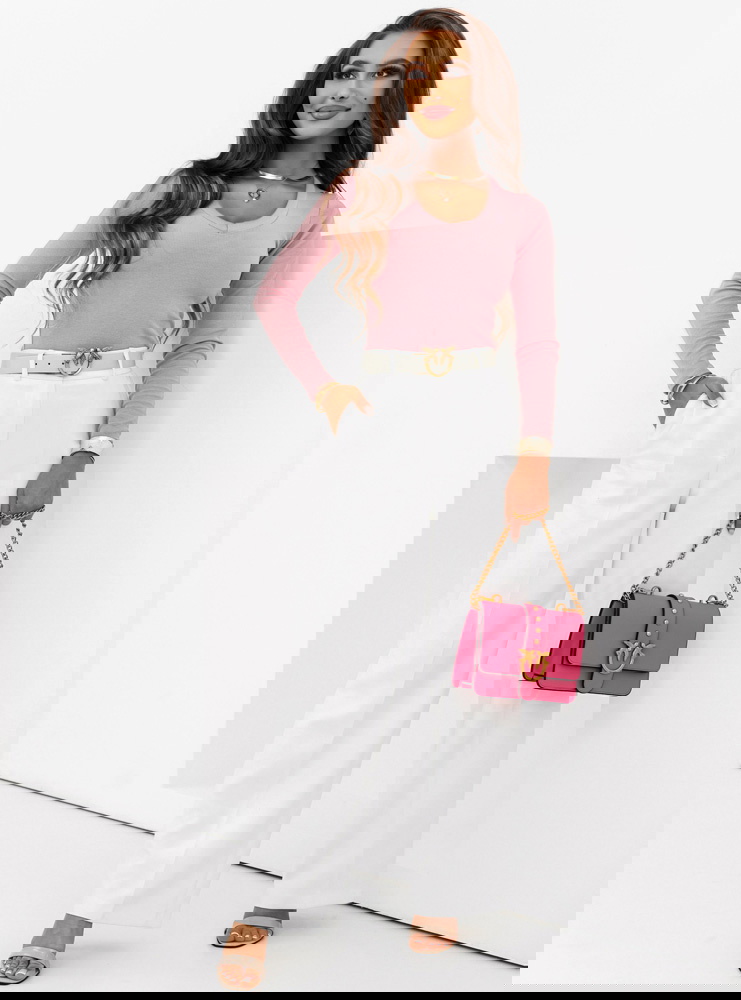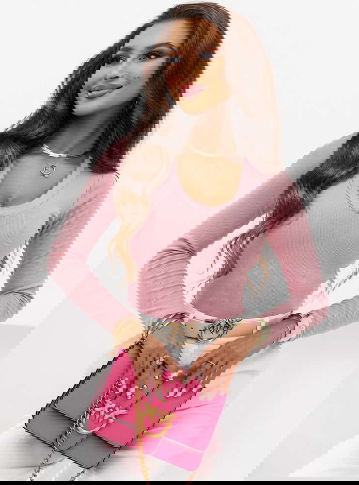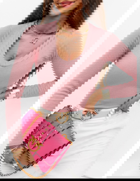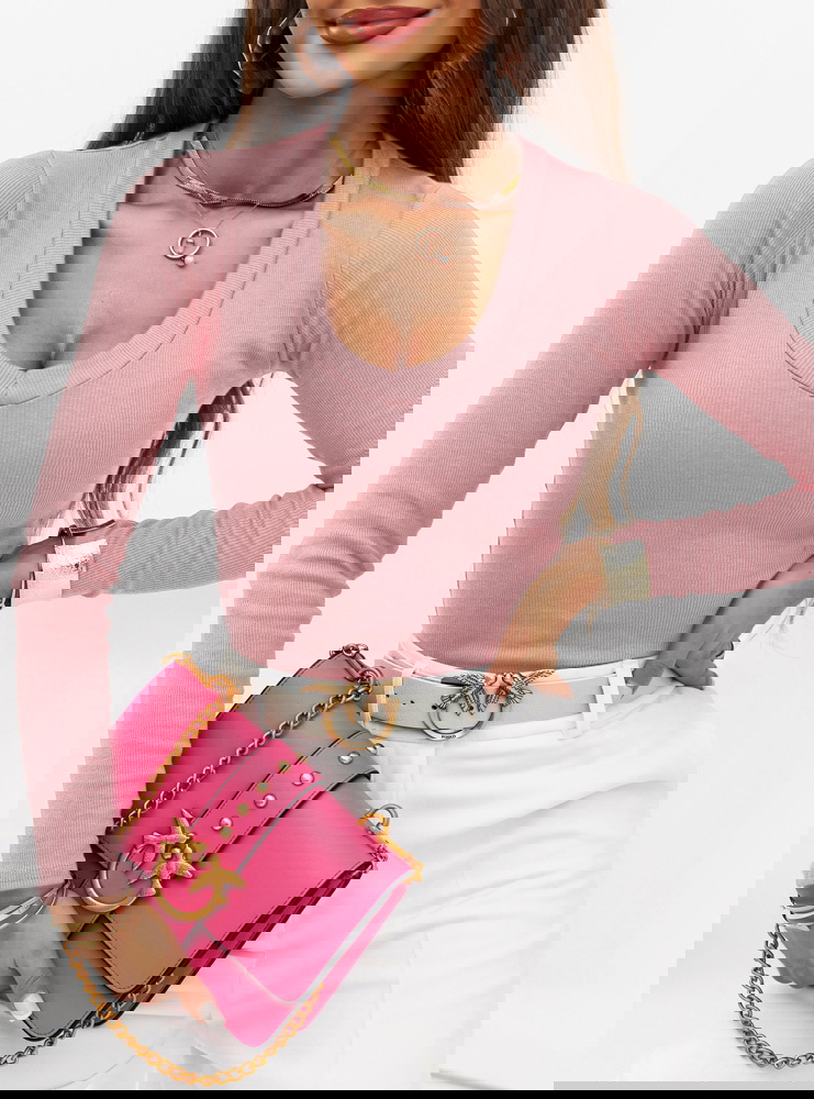 Pudrowa prążkowana bluzka z dekoltem w serek Ozolinoo
