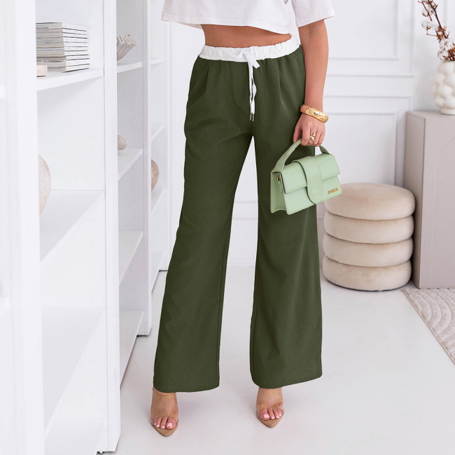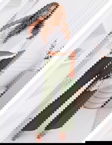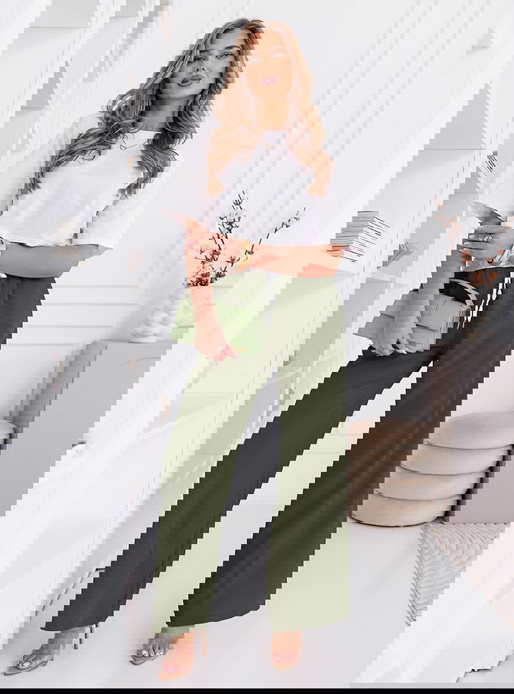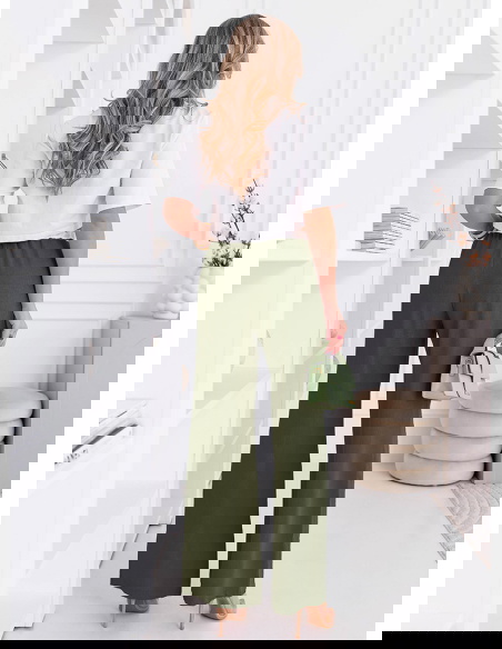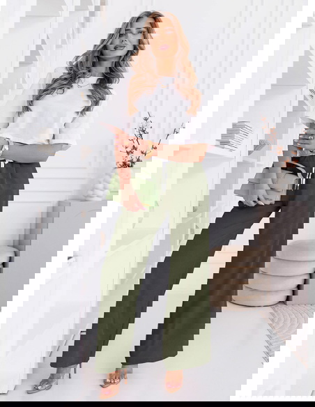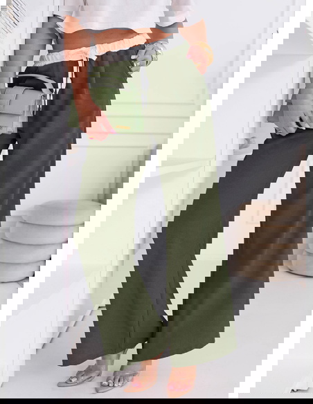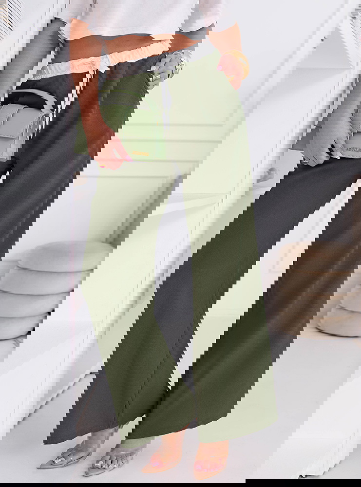 Szerokie spodnie z ozdobnym pasem i kieszeniami Francisella - khaki