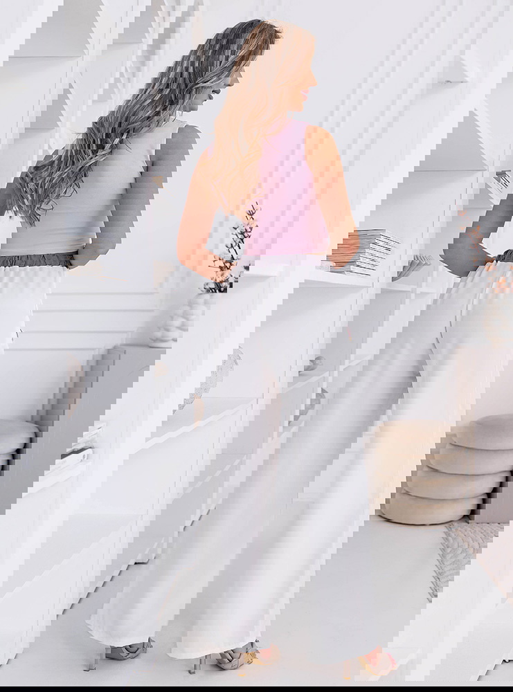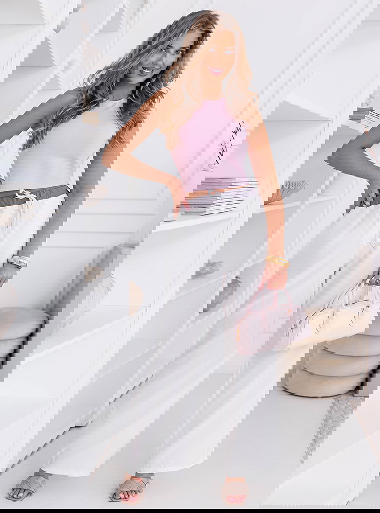 Bardziej kobieco – z dopasowaną bluzką i sandałkami.