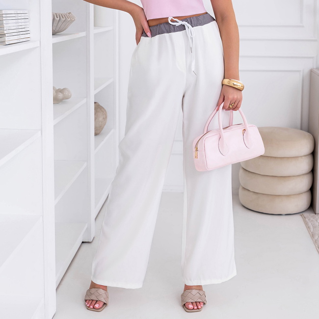 Białe szerokie spodnie z ozdobnym pasem i kieszeniami Francisella