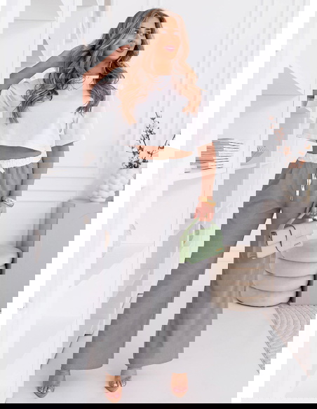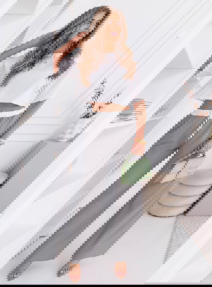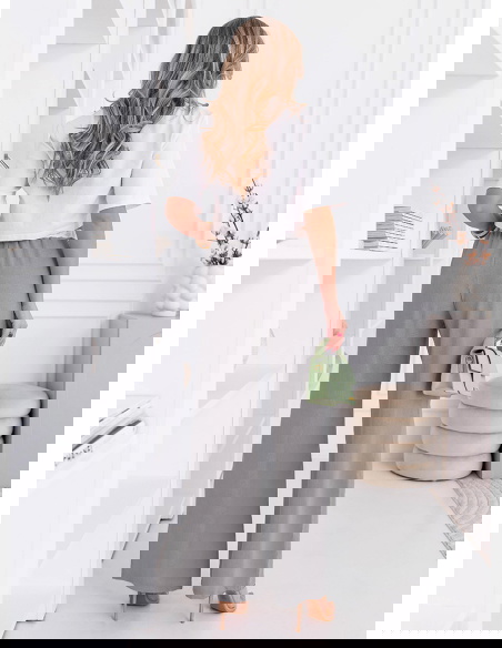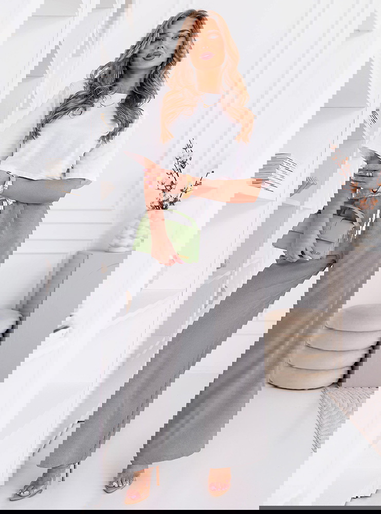 Szare szerokie spodnie z ozdobnym pasem i kieszeniami Francisella to wygodny model, który świetnie wpisuje się w codzienne stylizacje. Szerokie nogawki nadają sylwetce lekkości i zapewniają swobodę ruchów. Wysoki stan podkreśla talię i sprawia, że całość wygląda proporcjonalnie. Ozdobny pas dodaje charakteru i przyciąga uwagę, przełamując prosty fason. Materiał jest lekki i komfortowy, dzięki czemu spodnie dobrze sprawdzą się na co dzień. Szary kolor jest uniwersalny i łatwo dopasujesz go do różnych elementów garderoby. To model, który daje dużo możliwości stylizacyjnych i zawsze wygląda dobrze. Idealny zarówno na luźne dni, jak i bardziej dopracowane zestawy.
