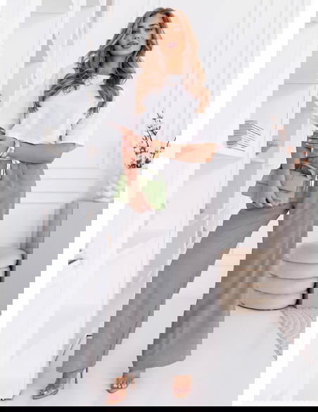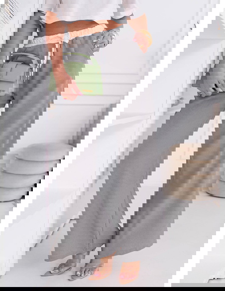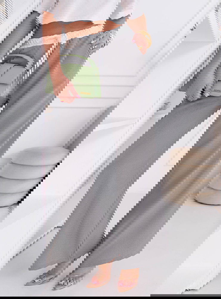 Szare szerokie spodnie z ozdobnym pasem i kieszeniami Francisella