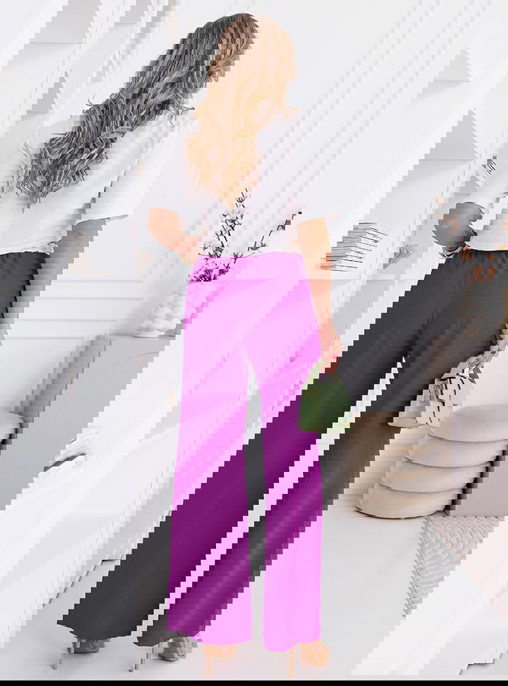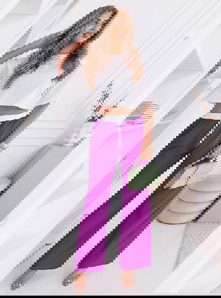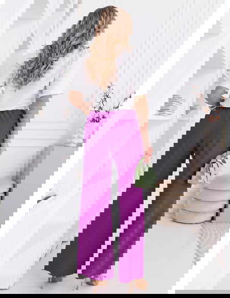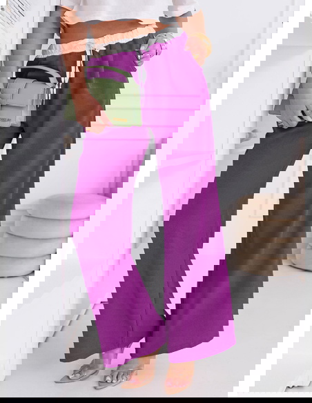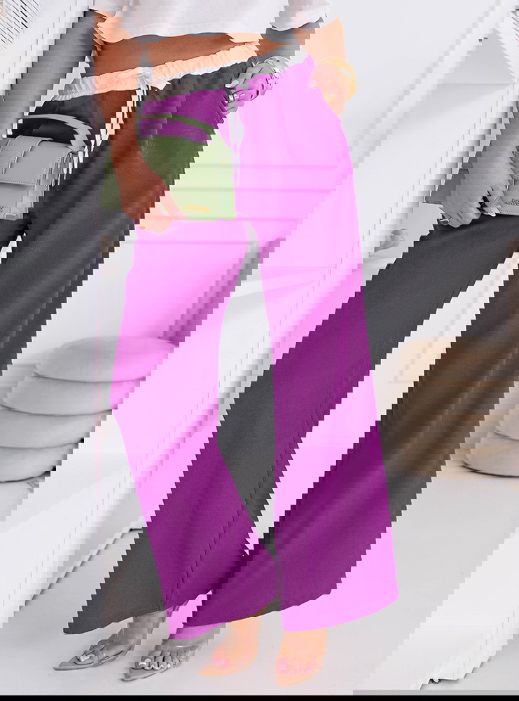 Szerokie spodnie z ozdobnym pasem i kieszeniami Francisella - fuksja