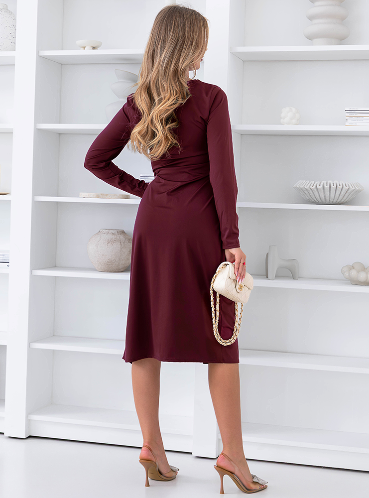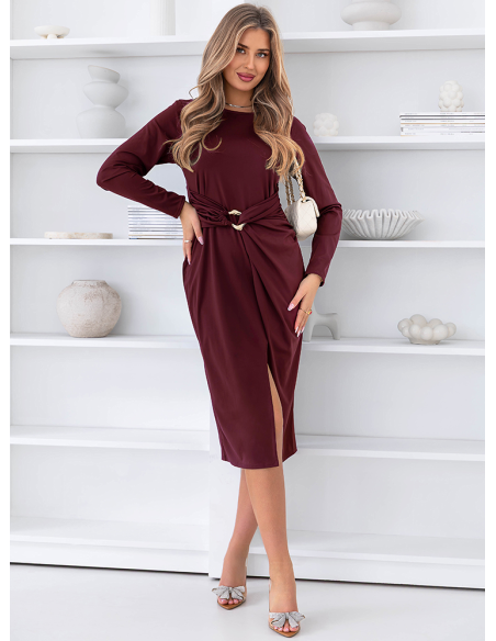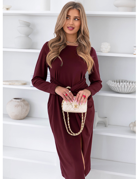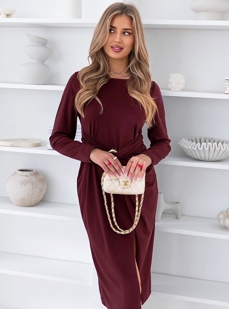 Bordowa sukienka midi z rozcięciem Summire