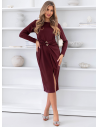 Sukienka midi z rozcięciem Summire - mocha mousse to elegancki model w ciepłym, stonowanym odcieniu, który świetnie wpisuje się w minimalistyczne stylizacje. Kolor mocha mousse wygląda subtelnie i bardzo stylowo, łatwo dopasujesz go do dodatków. Prosty, zabudowany dekolt nadaje całości klasy i równoważy bardziej dopasowany krój. Marszczenie w talii pięknie modeluje sylwetkę i podkreśla jej proporcje. Ozdobny detal w pasie przyciąga uwagę i dodaje charakteru. Rozcięcie na nodze wprowadza lekkość i delikatnie odsłania nogę przy ruchu. Długość midi sprawia, że sukienka jest uniwersalna i sprawdzi się na różne okazje. Materiał miękko układa się na ciele i zapewnia komfort przez cały dzień.
