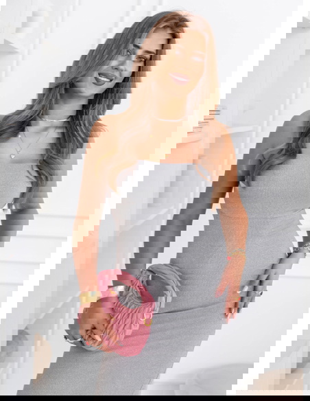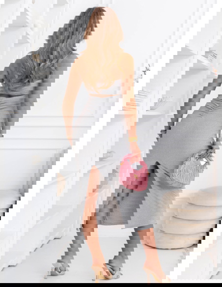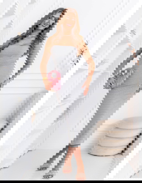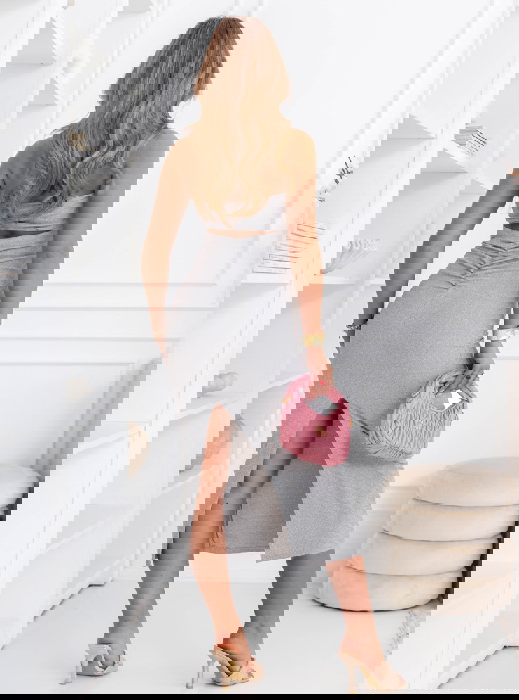 Szara prążkowana sukienka z wycięciem na plecach Elyzabeth