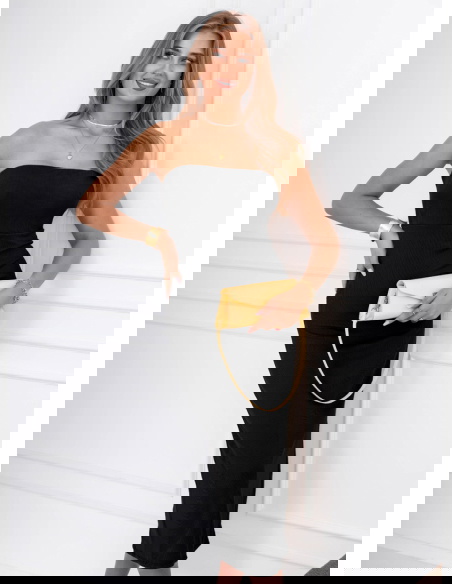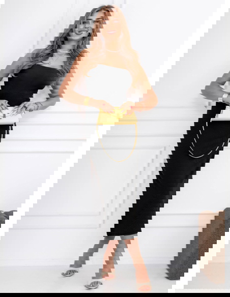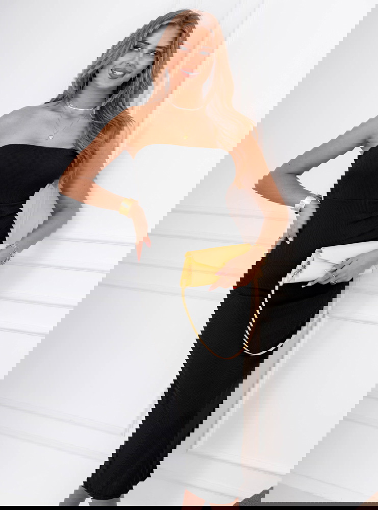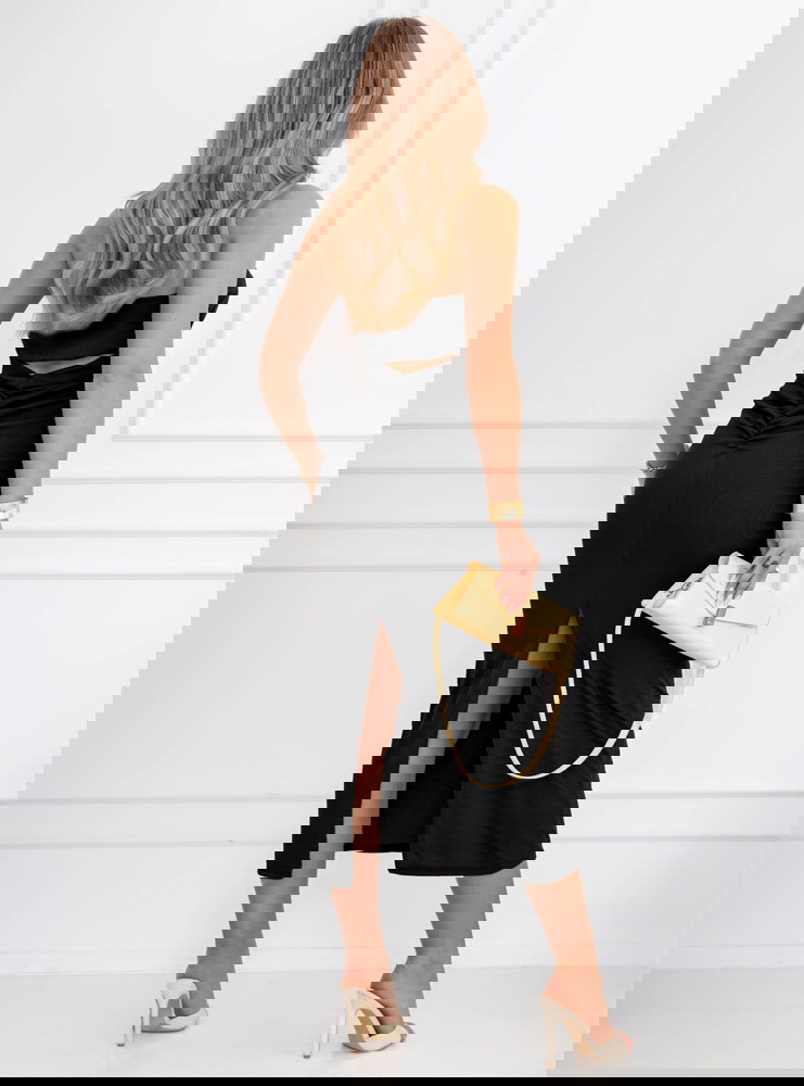 Czarna prążkowana sukienka z wycięciem na plecach Elyzabeth