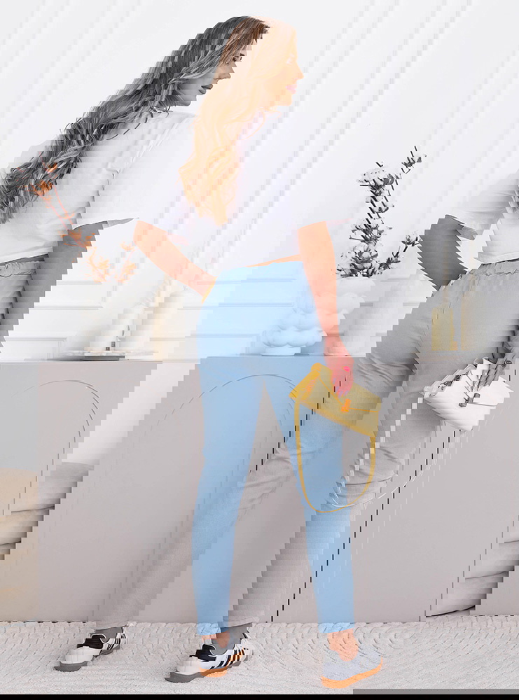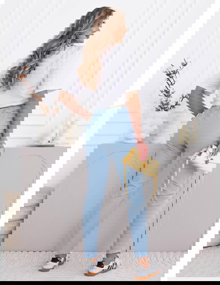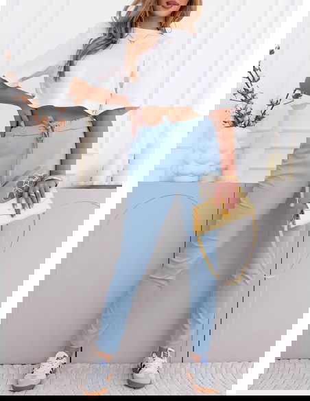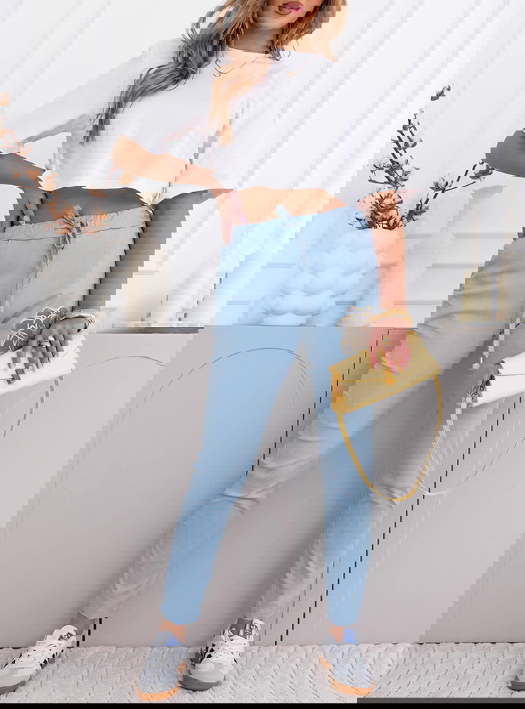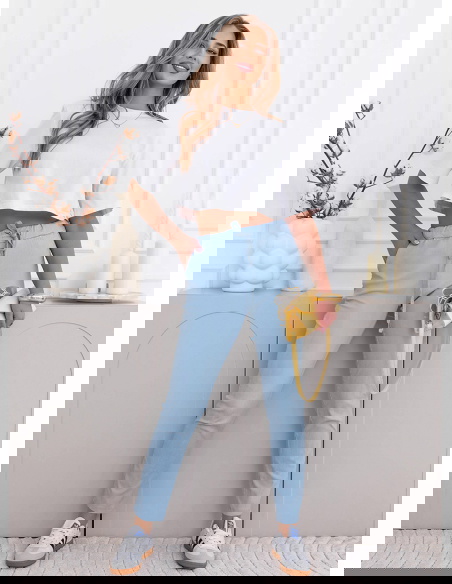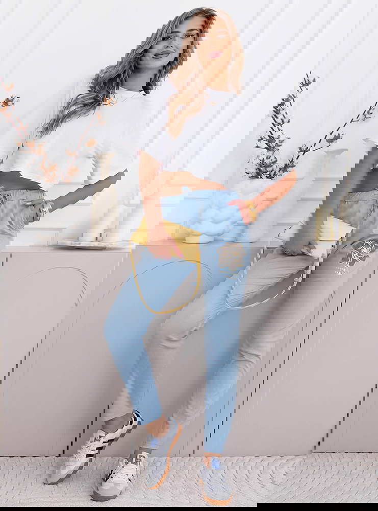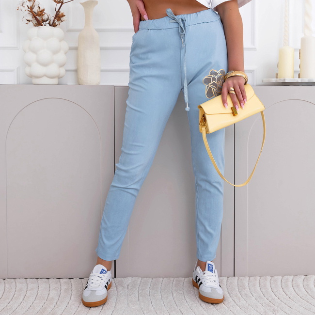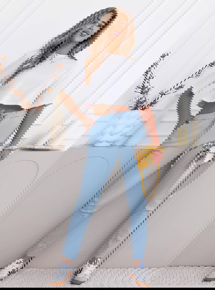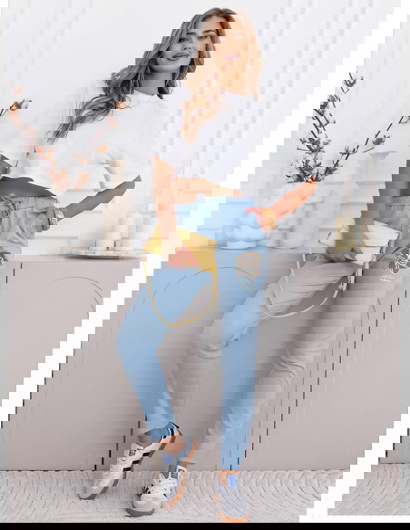 Błękitne spodnie z ozdobnym nadrukiem i kieszeniami Kailani