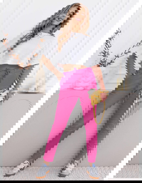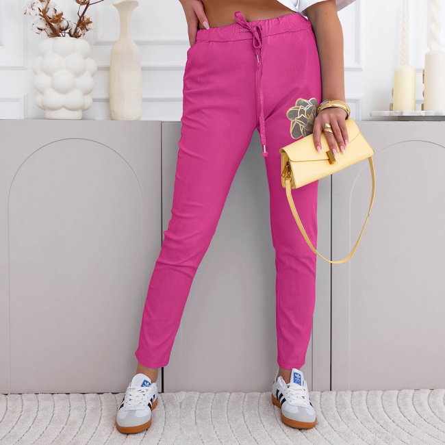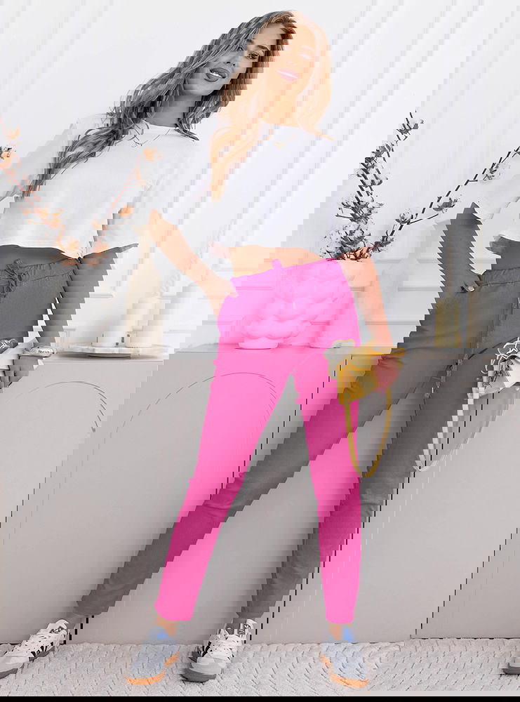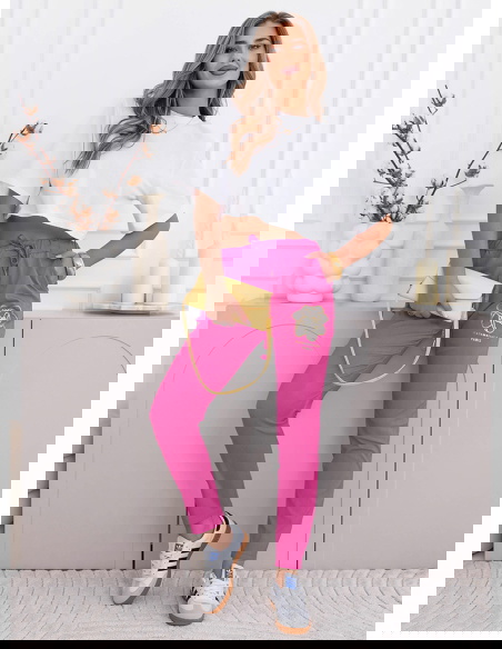 Różowe spodnie z ozdobnym nadrukiem i kieszeniami Kailani