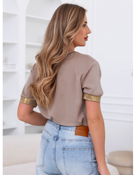 Beżowa bluzka z krótkim rękawem Bernedotta