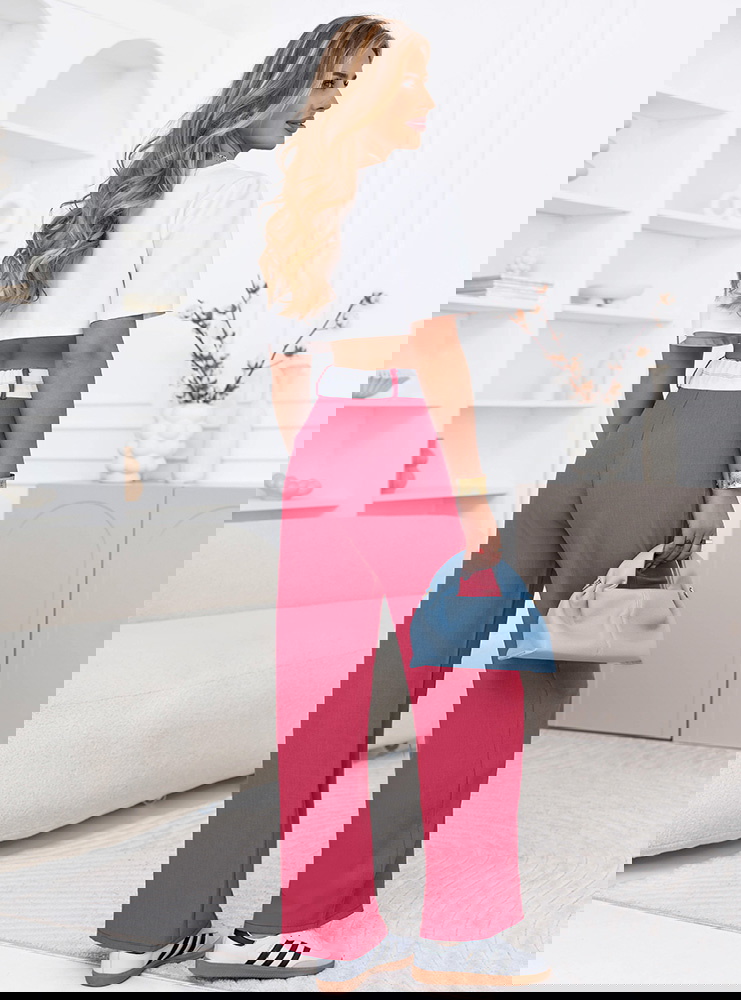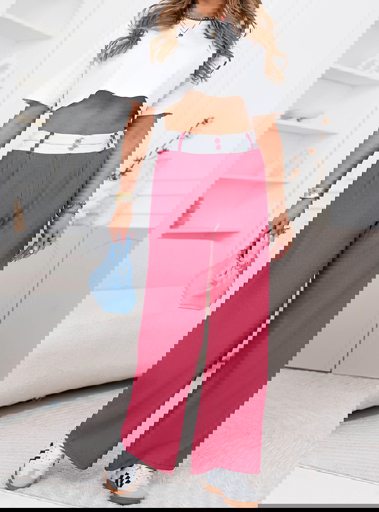 Różowe szerokie spodnie z kieszeniami Cassidia