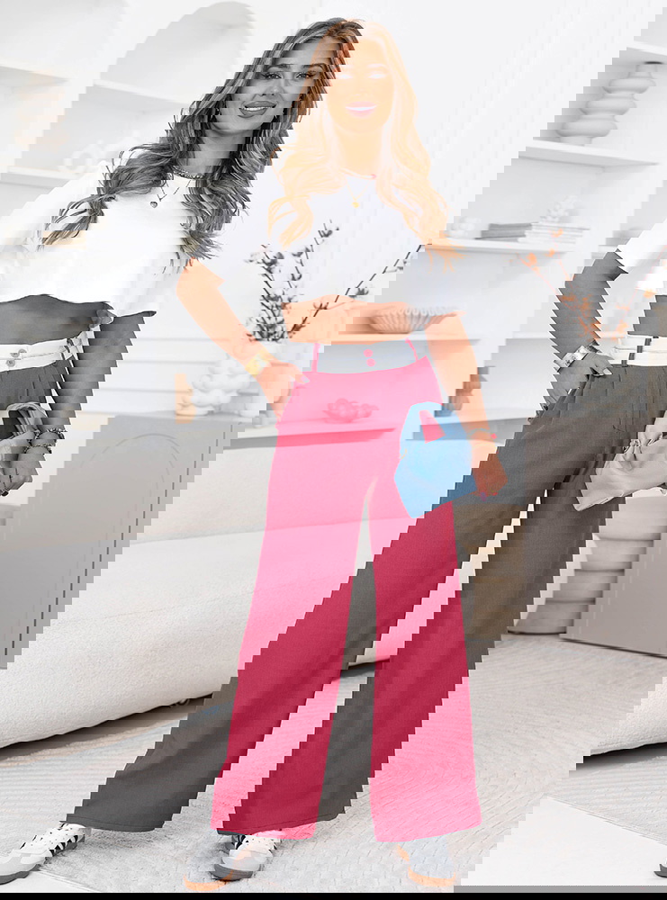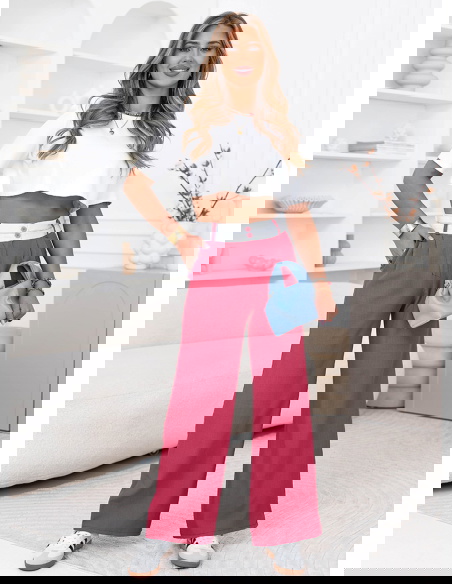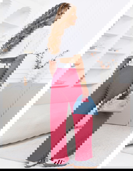 Różowe szerokie spodnie z kieszeniami Cassidia to model, który łączy wygodę z wyrazistym, kobiecym kolorem. Szerokie nogawki lekko opadają i pięknie układają się w ruchu, nadając sylwetce lekkości. Wysoki stan podkreśla talię i sprawia, że całość wygląda proporcjonalnie i stylowo. Kieszenie dodają praktyczności i wpisują się w codzienny charakter spodni. Materiał jest przyjemny w noszeniu i dobrze się układa przez cały dzień. Różowy kolor przyciąga uwagę i dodaje stylizacji świeżości. To model, który sprawdzi się zarówno na co dzień, jak i przy bardziej dopracowanych zestawach. Świetnie wygląda w połączeniu z prostą górą, która równoważy całość.