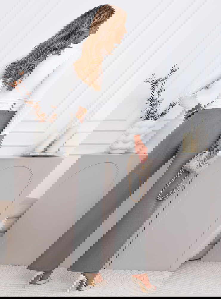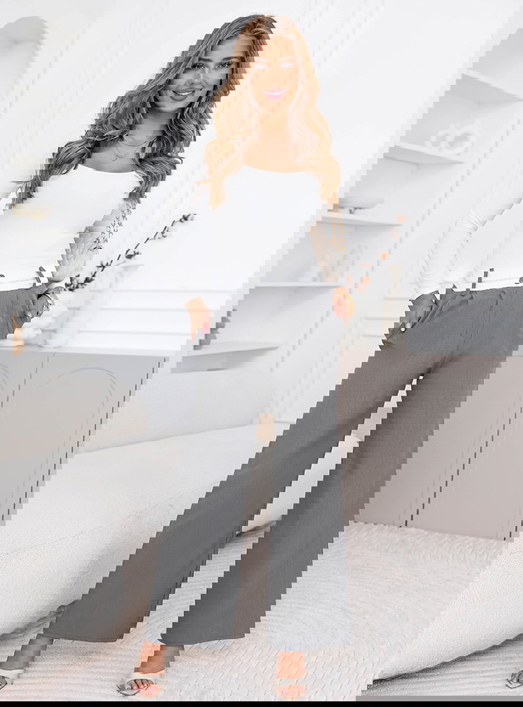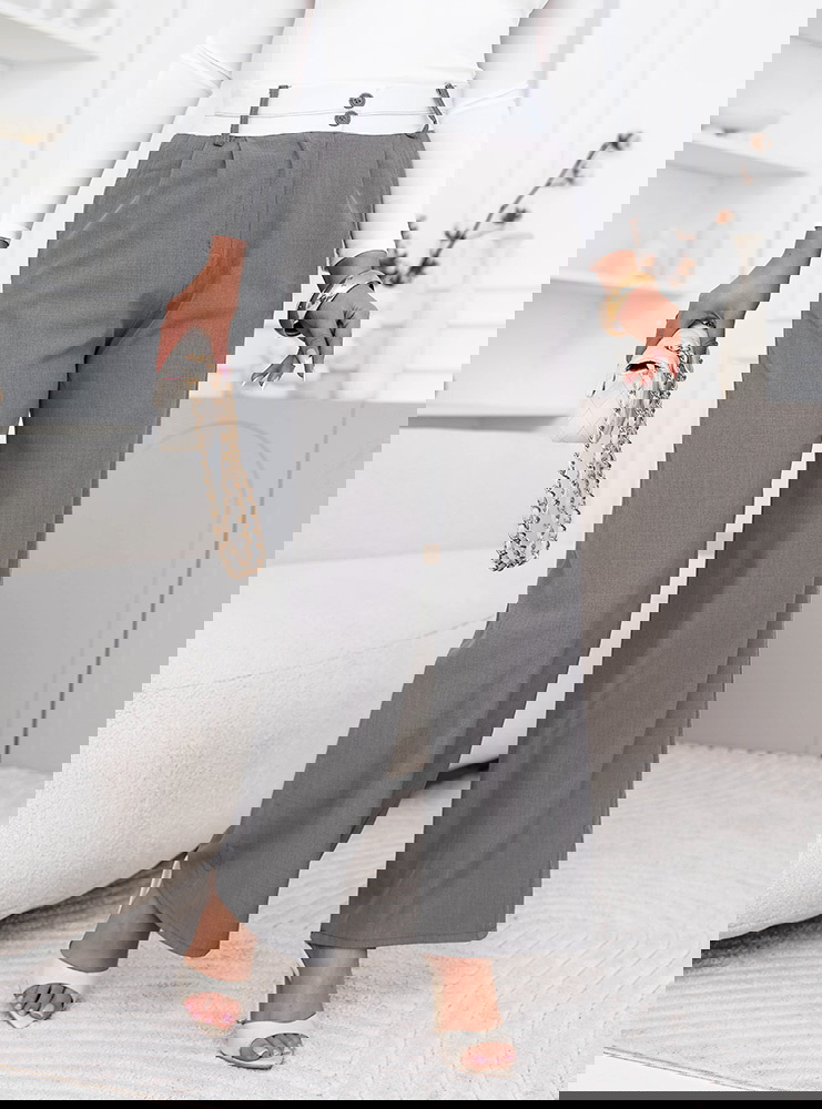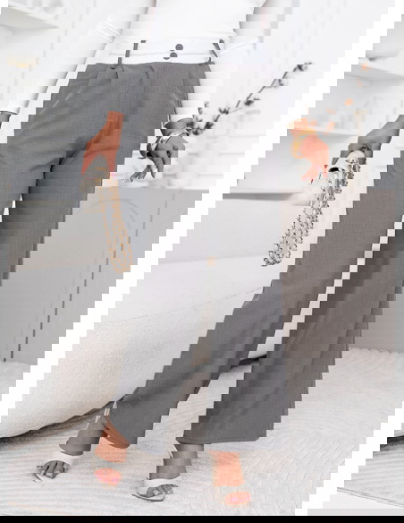 Szare szerokie spodnie z kieszeniami Cassidia to klasyczna baza, którą założysz na milion sposobów. Szerokie nogawki nadają im lekkości i sprawiają, że świetnie układają się w ruchu. Wysoki stan podkreśla talię i ładnie wydłuża sylwetkę. Kieszenie dodają luzu i są praktycznym detalem na co dzień. Materiał jest przyjemny w noszeniu i dobrze trzyma formę przez cały dzień. Szary kolor jest neutralny, więc bez problemu dopasujesz do niego zarówno jasne, jak i mocniejsze akcenty. Ten model sprawdzi się w stylizacjach codziennych, ale też bardziej uporządkowanych. To spodnie, które łatwo ogarnąć rano bez zastanawiania się co do nich dobrać.