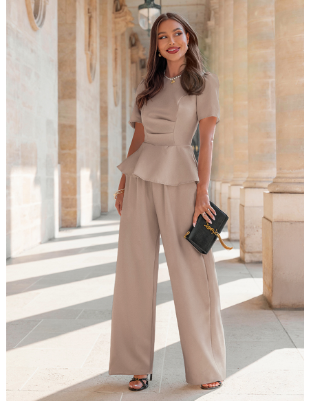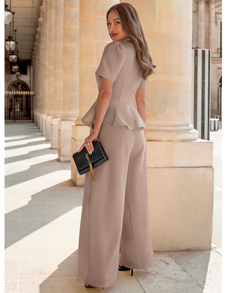 Komplet bluzka i szerokie spodnie Elorette - mocha mousse