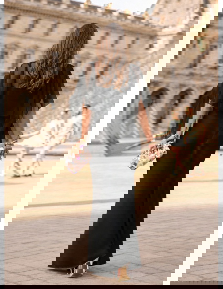 Czarna satynowa sukienka z tiulową...