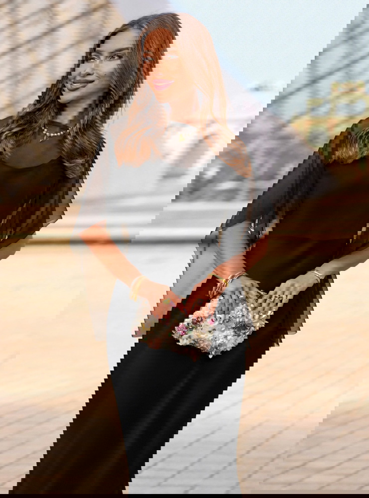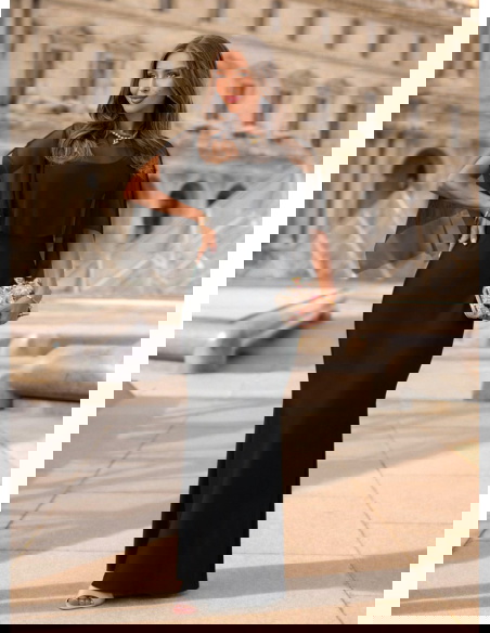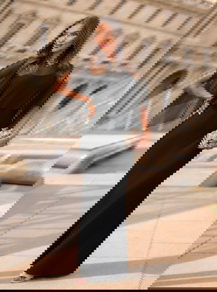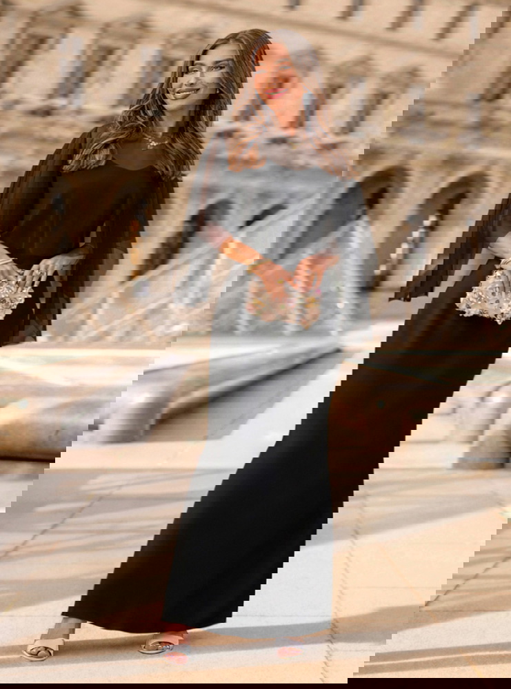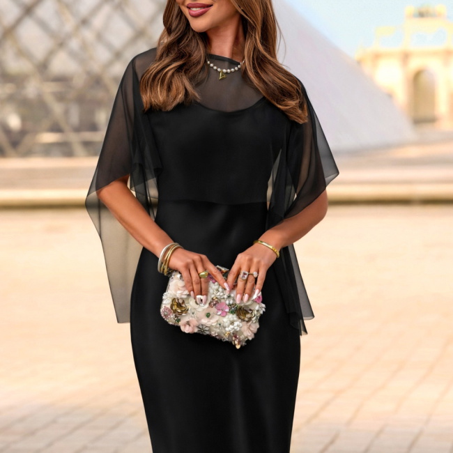 Czarna satynowa sukienka z tiulową narzutką Justeene