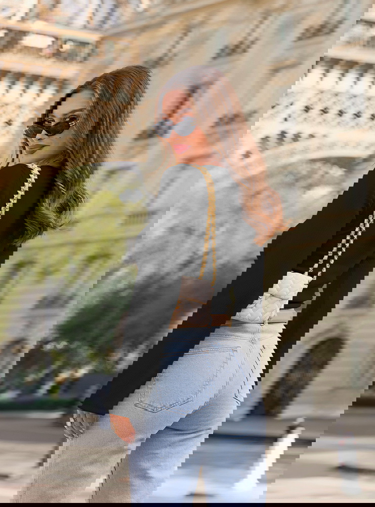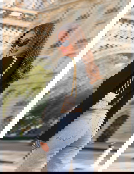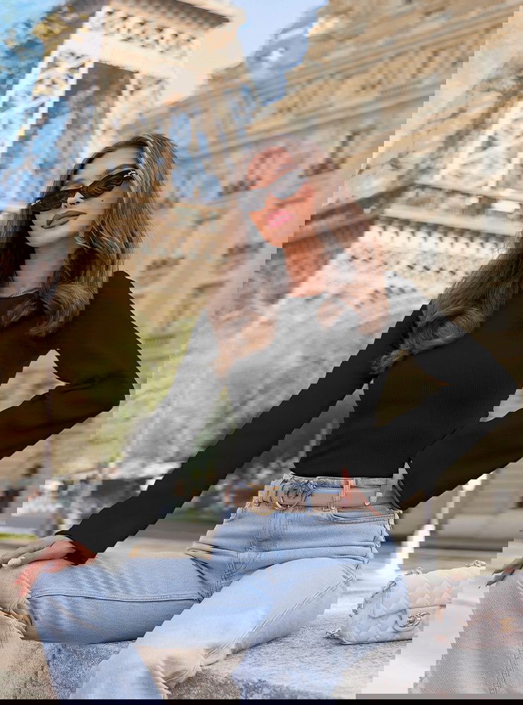 Czarna prążkowana bluzka z rozszerzanym rękawem Chanelle to klasyka w nowoczesnym wydaniu, która robi efekt bez zbędnych dodatków. Dopasowany fason podkreśla sylwetkę i ładnie układa się na ciele, a prążkowany materiał dodaje całości charakteru. Rozszerzane rękawy wprowadzają lekkość i sprawiają, że bluzka wyróżnia się już na pierwszy rzut oka. Czerń nadaje jej elegancji i sprawia, że łatwo dopasować ją do różnych stylizacji. To model, który możesz wykorzystać na wiele okazji, od codziennych wyjść po bardziej dopracowane zestawy. Materiał jest przyjemny w noszeniu i dobrze dopasowuje się do ruchu. W kolekcji Bonjour Paris pojawia się jako mocniejszy akcent, który buduje cały look.