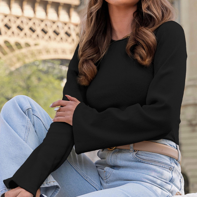 Czarna prążkowana bluzka z rozszerzanym rękawem Chanelle