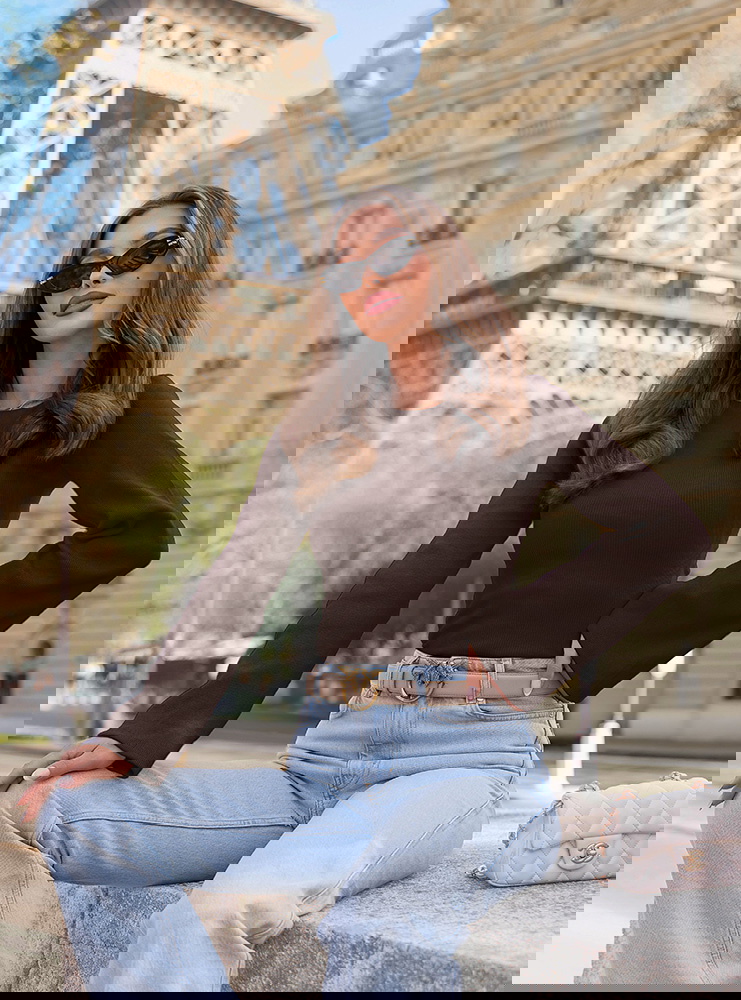 Czarna prążkowana bluzka z rozszerzanym rękawem Chanelle to klasyka w nowoczesnym wydaniu, która robi efekt bez zbędnych dodatków. Dopasowany fason podkreśla sylwetkę i ładnie układa się na ciele, a prążkowany materiał dodaje całości charakteru. Rozszerzane rękawy wprowadzają lekkość i sprawiają, że bluzka wyróżnia się już na pierwszy rzut oka. Czerń nadaje jej elegancji i sprawia, że łatwo dopasować ją do różnych stylizacji. To model, który możesz wykorzystać na wiele okazji, od codziennych wyjść po bardziej dopracowane zestawy. Materiał jest przyjemny w noszeniu i dobrze dopasowuje się do ruchu. W kolekcji Bonjour Paris pojawia się jako mocniejszy akcent, który buduje cały look.