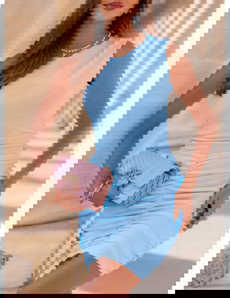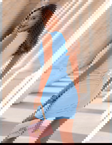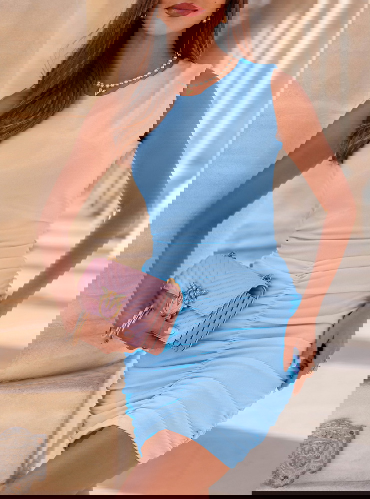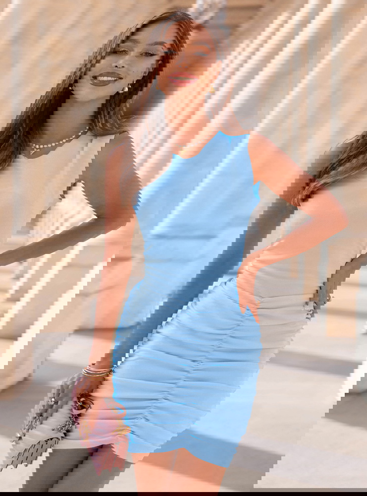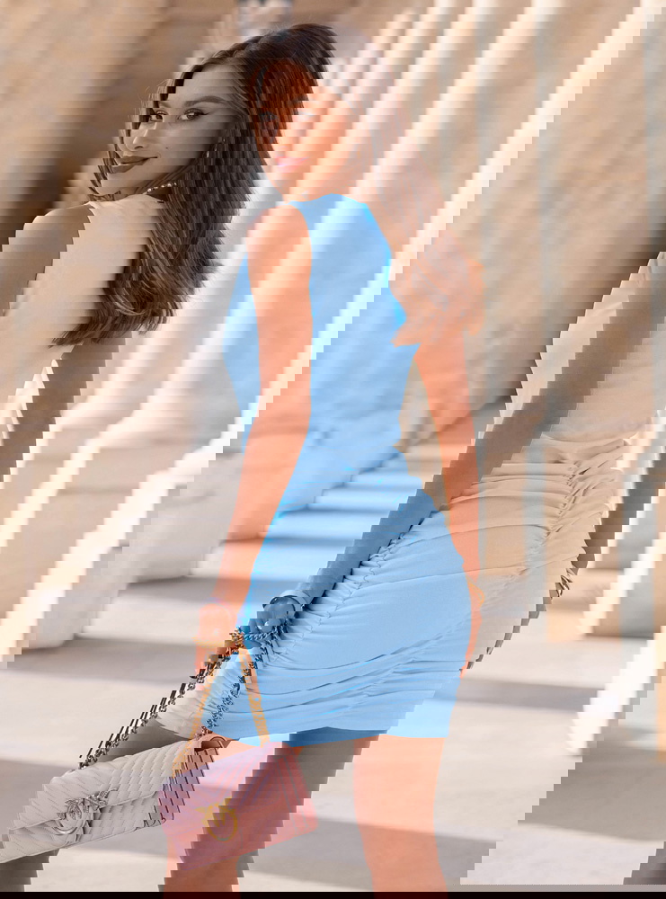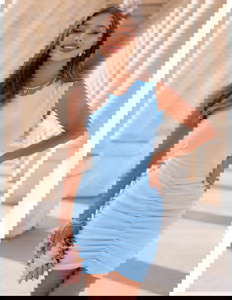 Błękitna sukienka mini z marszczeniami Darena