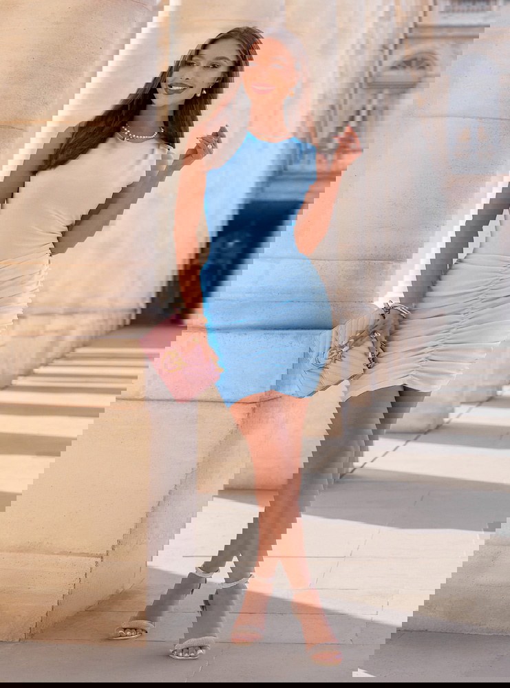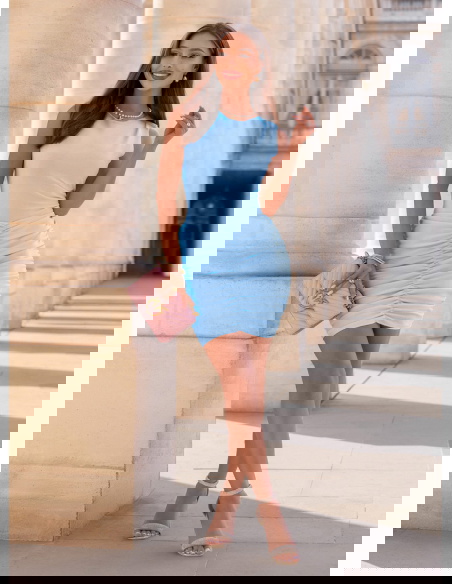 Błękitna sukienka mini z marszczeniami Darena to model, który od razu nadaje stylizacji lekkości i świeżości. Dopasowana góra podkreśla sylwetkę, a marszczony dół pięknie modeluje biodra i talię. Brak rękawów sprawia, że całość wygląda nowocześnie i bardzo kobieco. Błękitny kolor przyciąga spojrzenia i świetnie wpisuje się w jaśniejsze, bardziej delikatne stylizacje. Materiał dobrze dopasowuje się do ciała i podkreśla jego kształty. To sukienka, która łączy prostotę z efektem „wow”. W kolekcji Bonjour Paris pojawia się jako lżejsza, bardziej dziewczęca propozycja.
