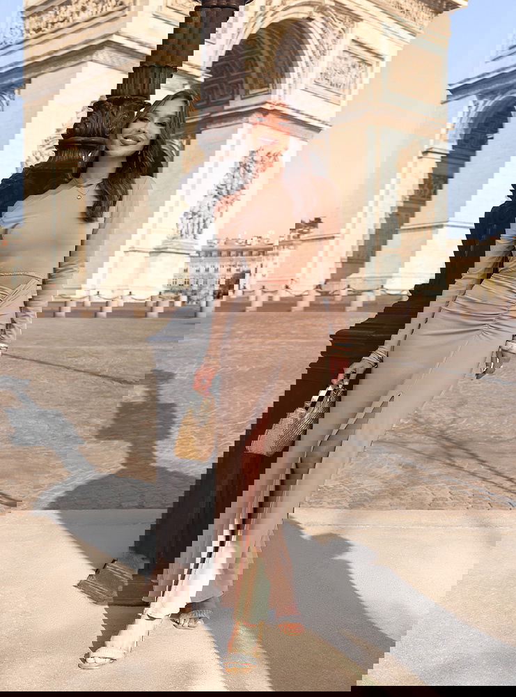 Beżowa sukienka z wycięciem na...
