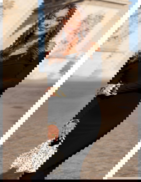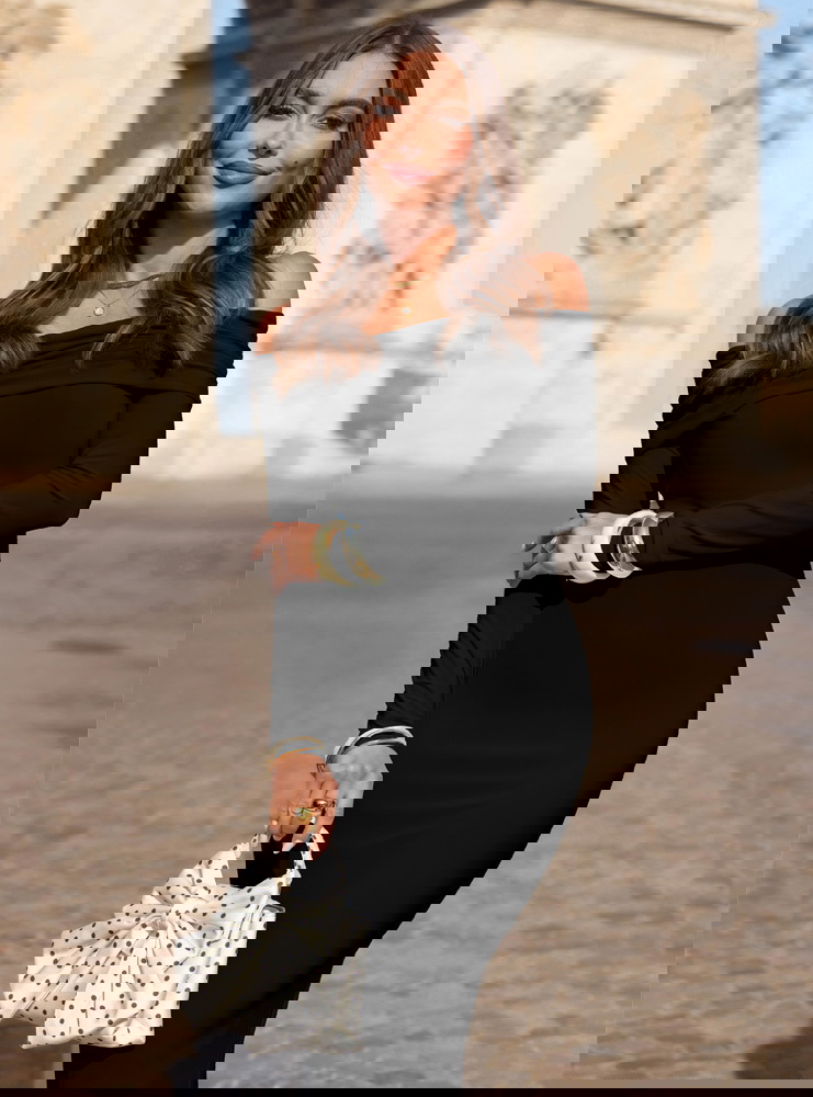 Czarna dopasowana sukienka z odkrytymi ramionami Farhana