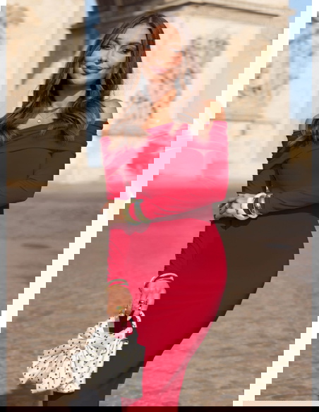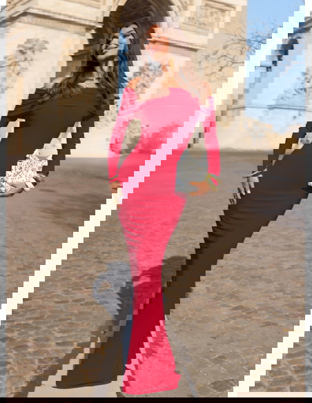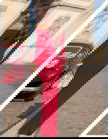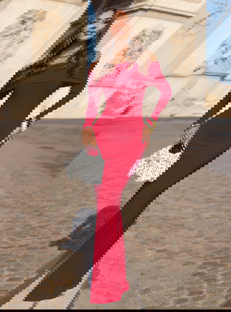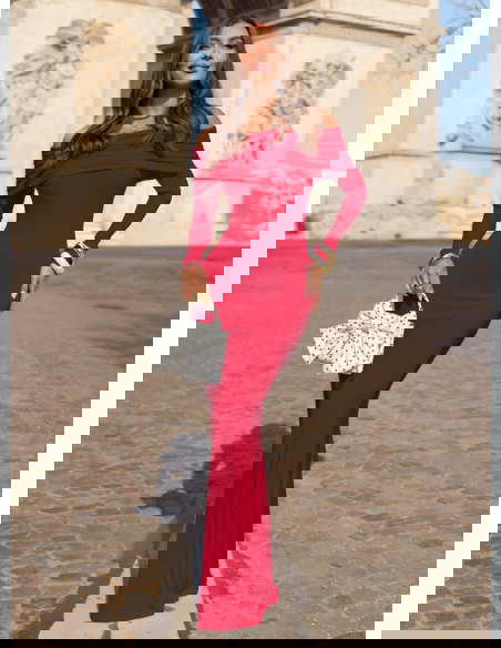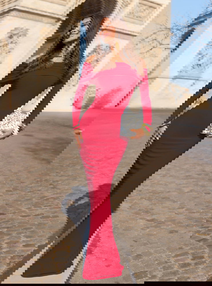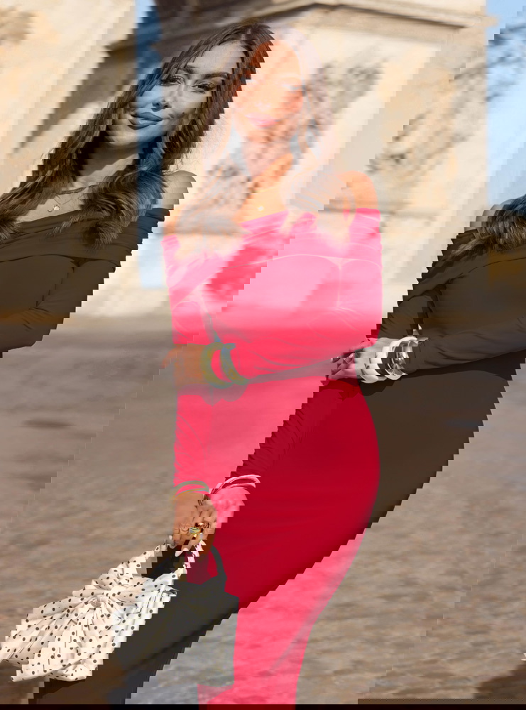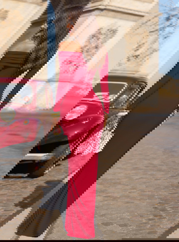 Malinowa dopasowana sukienka z odkrytymi ramionami Farhana