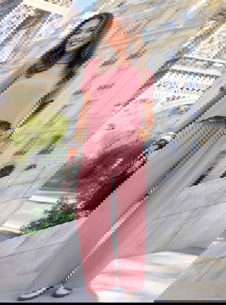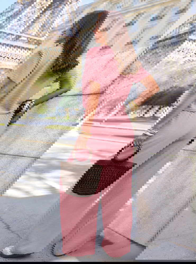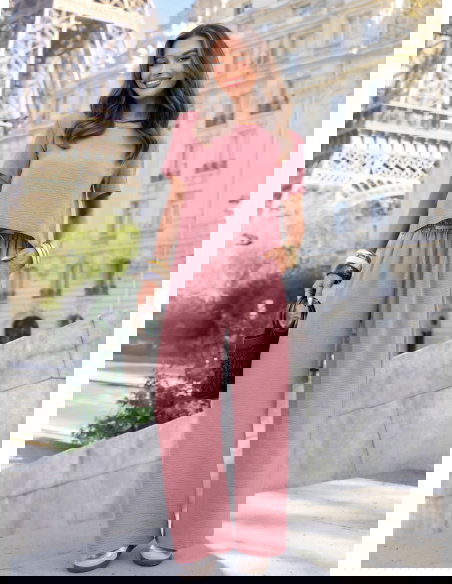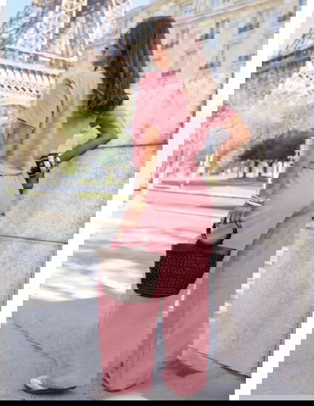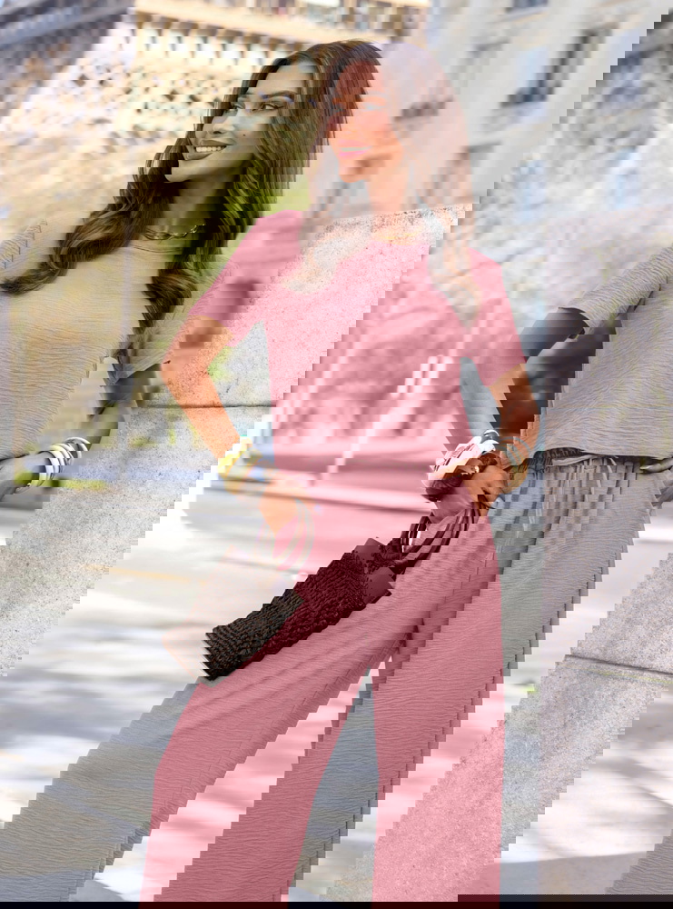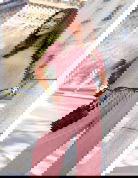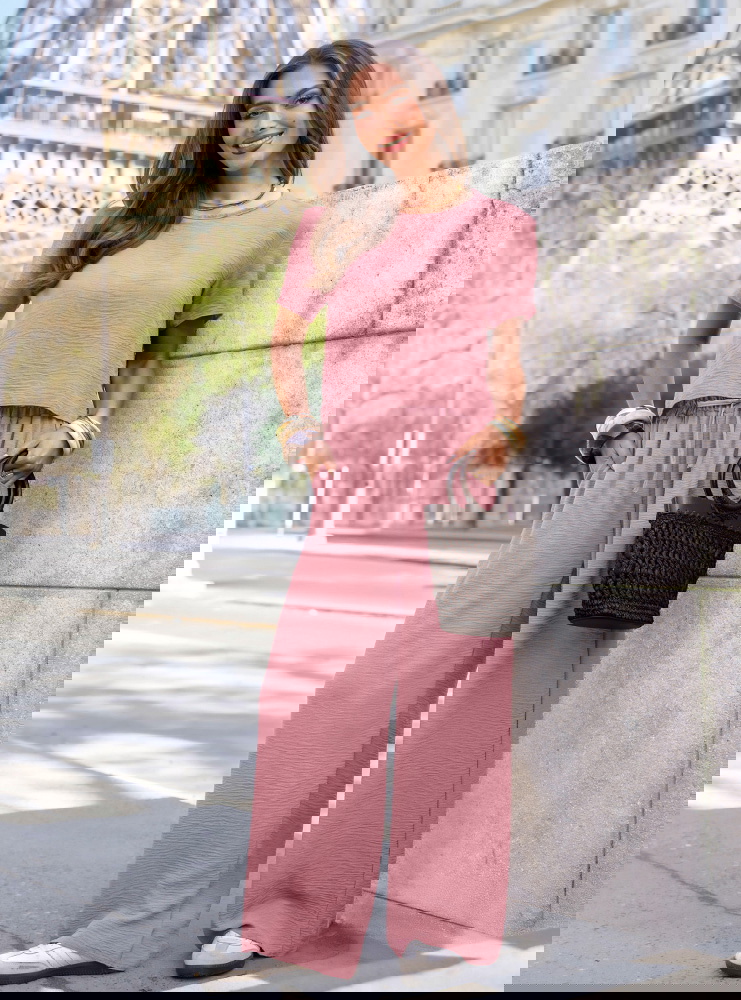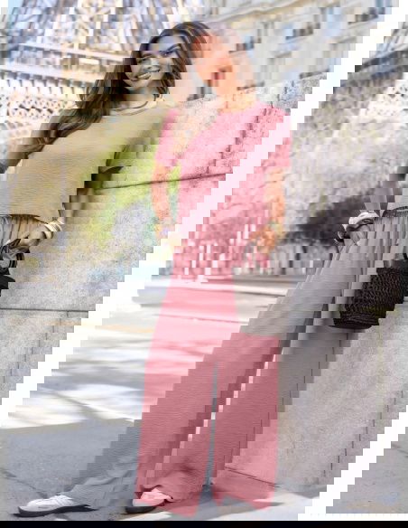 Komplet bluzka z krótkim rękawem i szerokie spodnie Inocenciaa - brudny róż