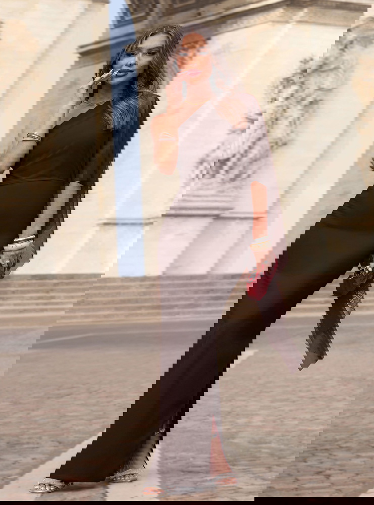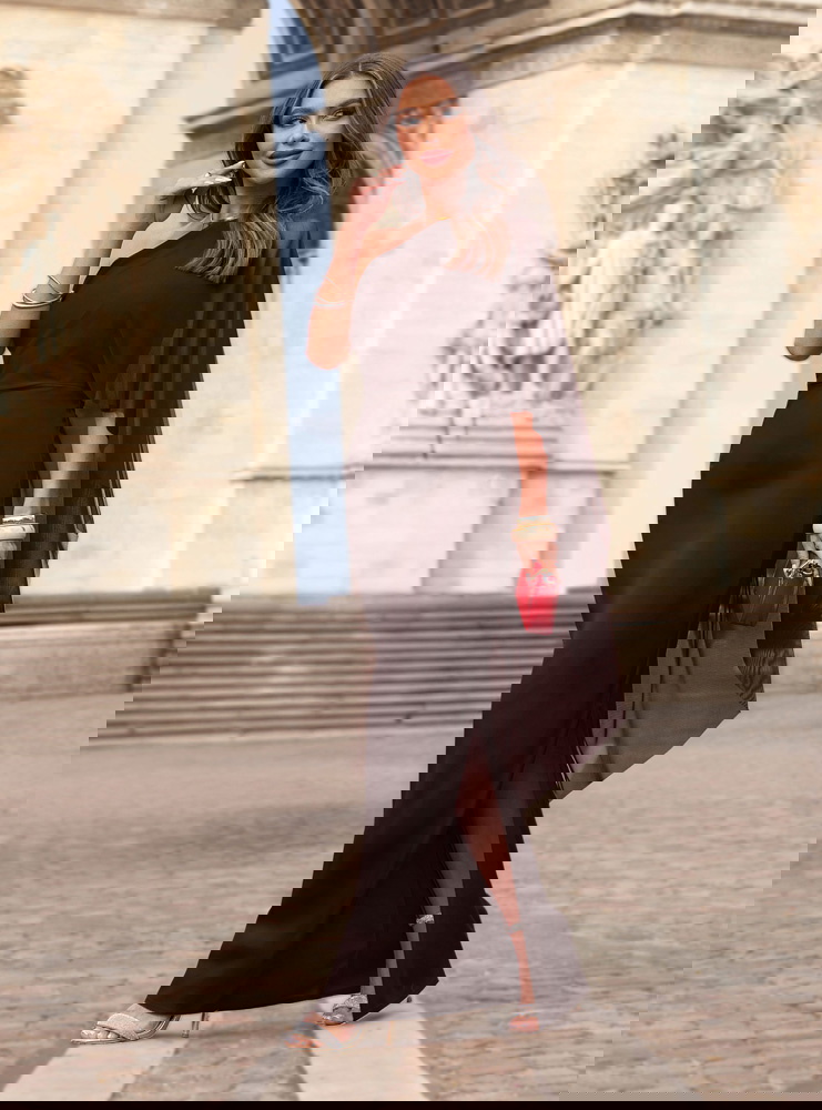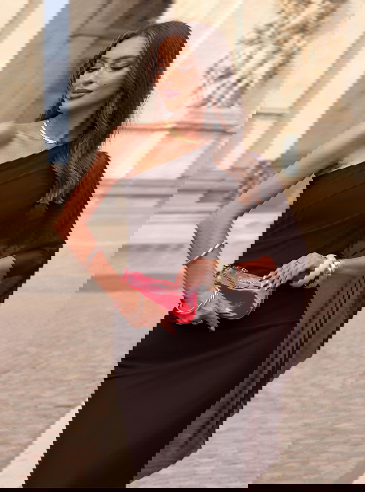 Czekoladowa długa sukienka na jedno ramię Aunjenae