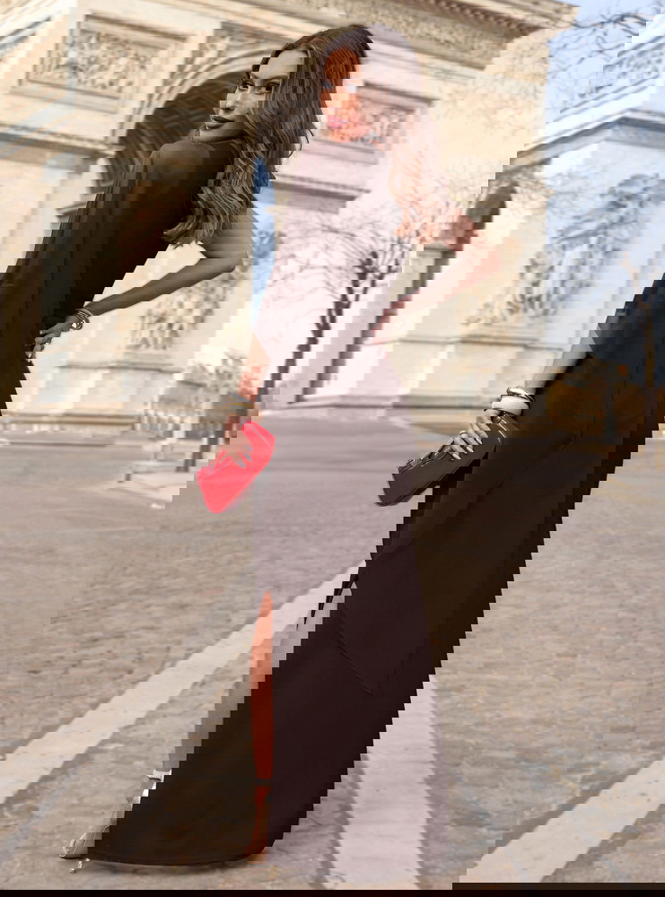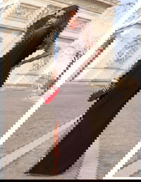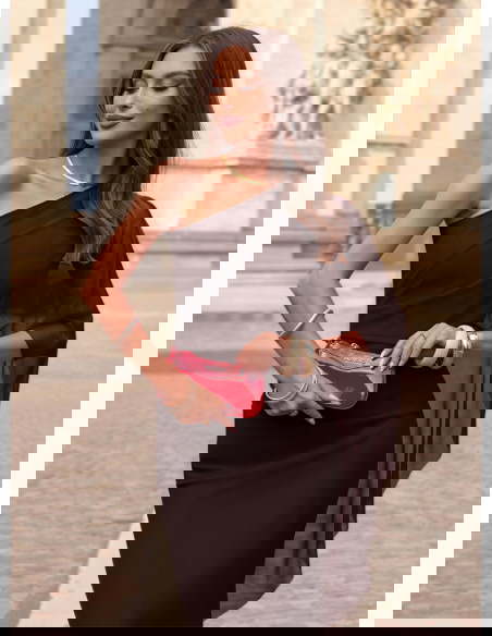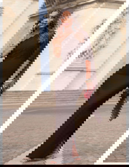 Czekoladowa długa sukienka na jedno...