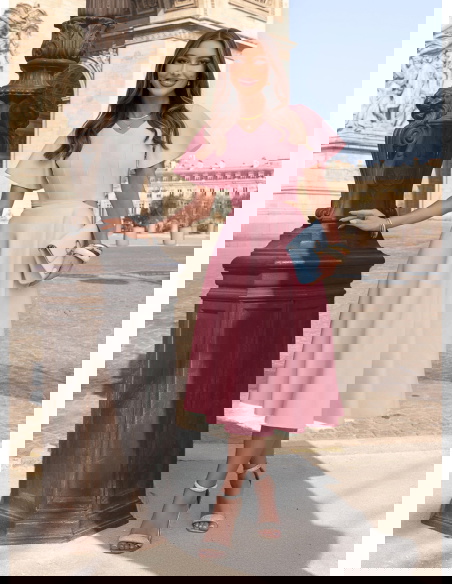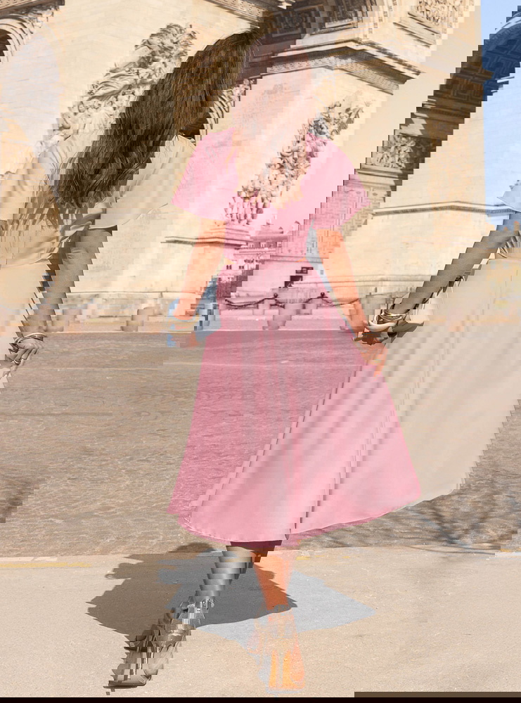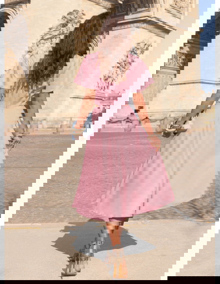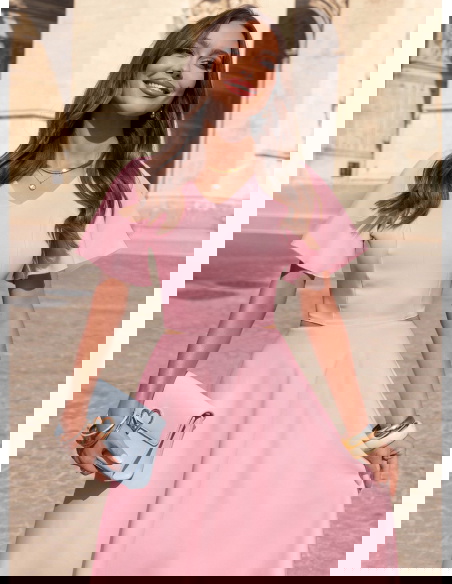 Pudrowa sukienka midi rozkloszowana Claetraa