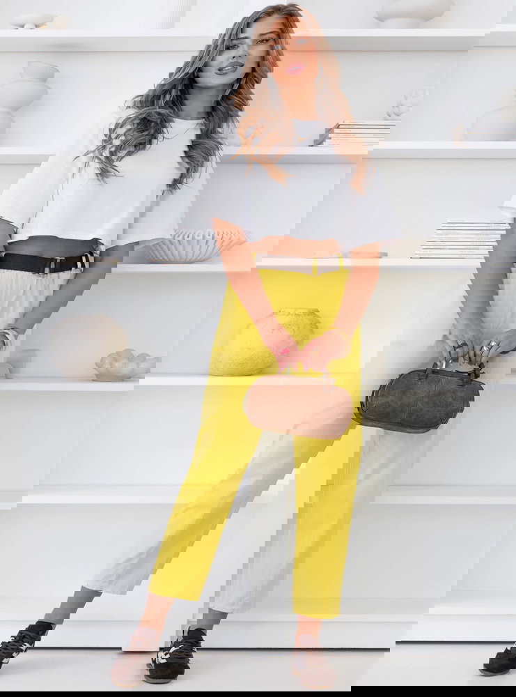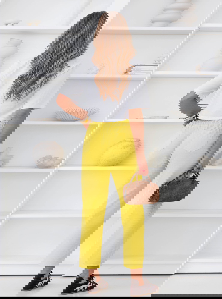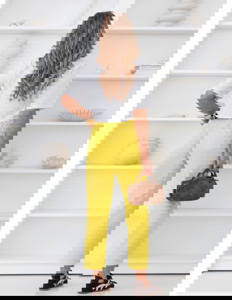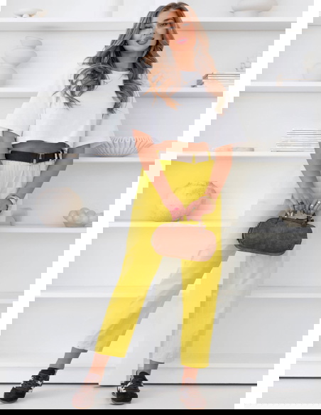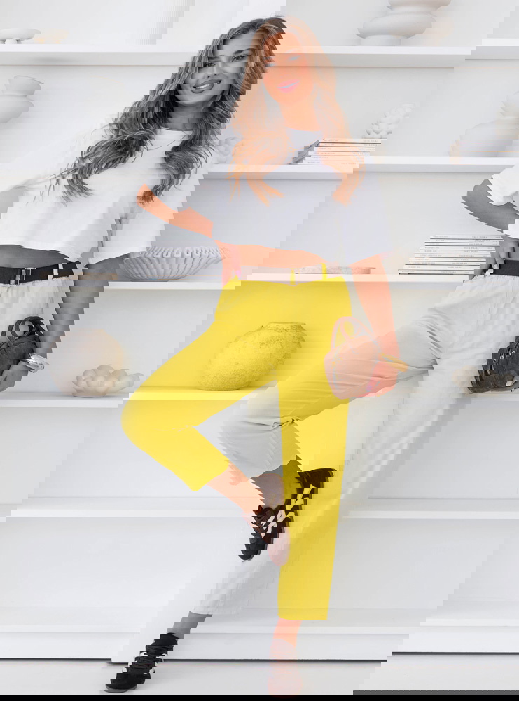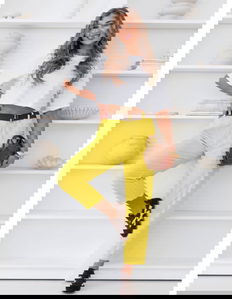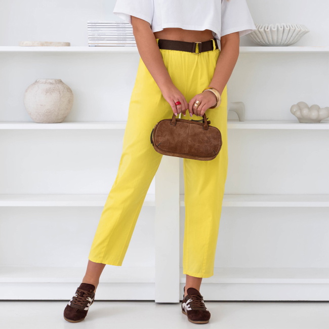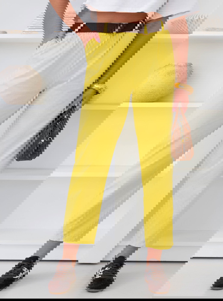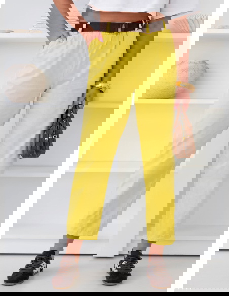 Cytrynowe spodnie z paskiem Perpedelia