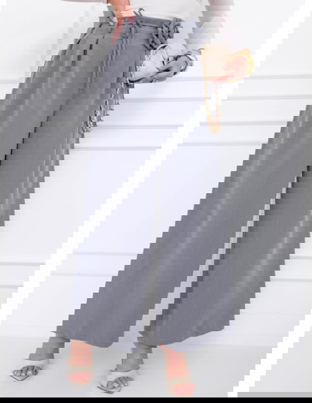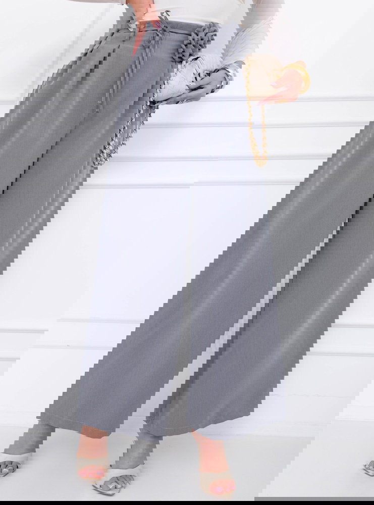 Szare szerokie spodnie z ozdobnym paskiem Cameal