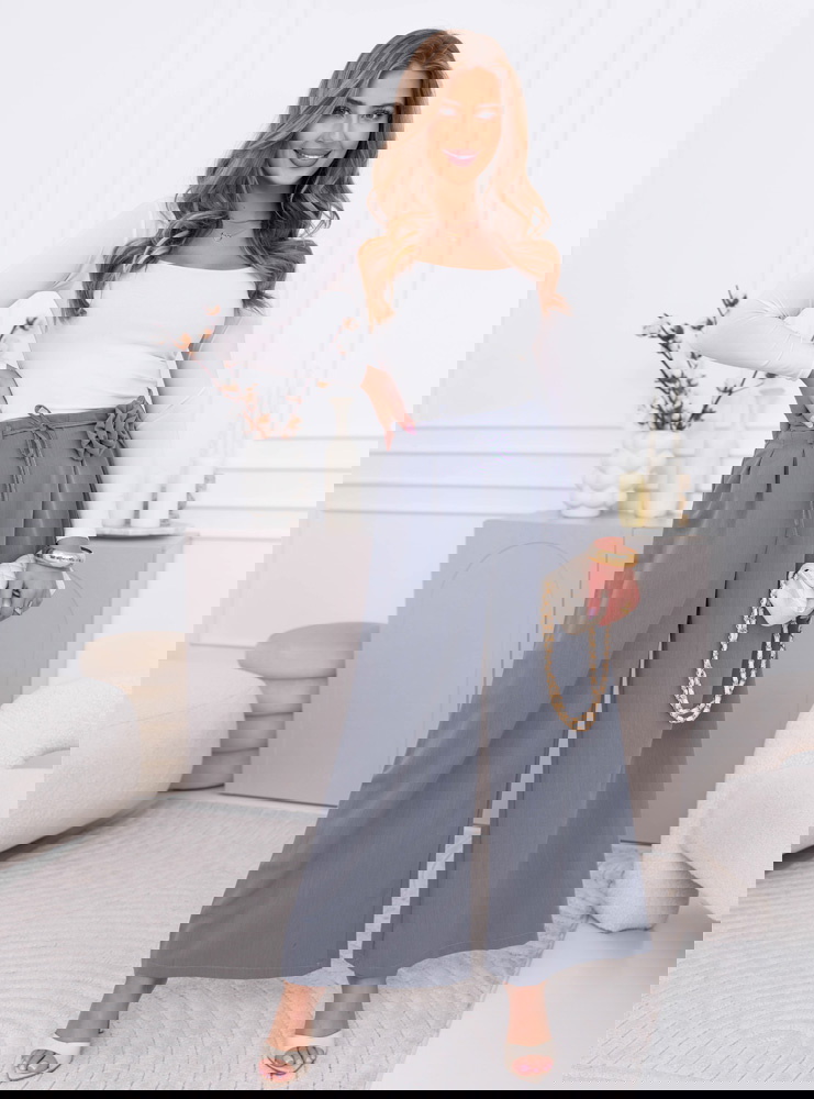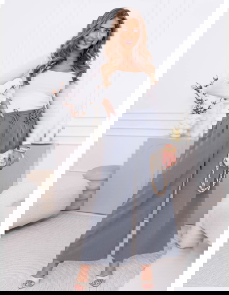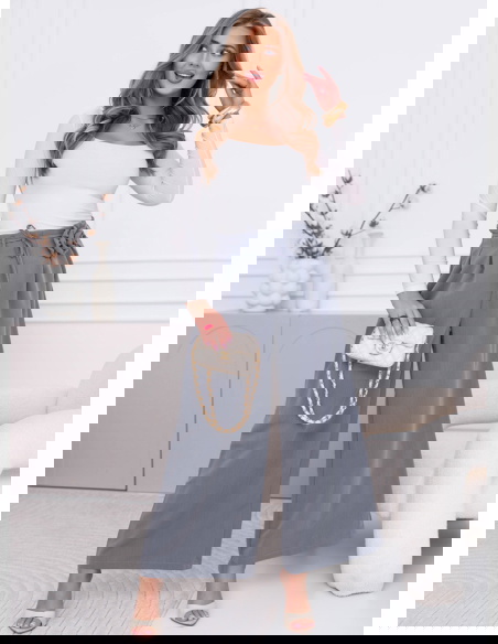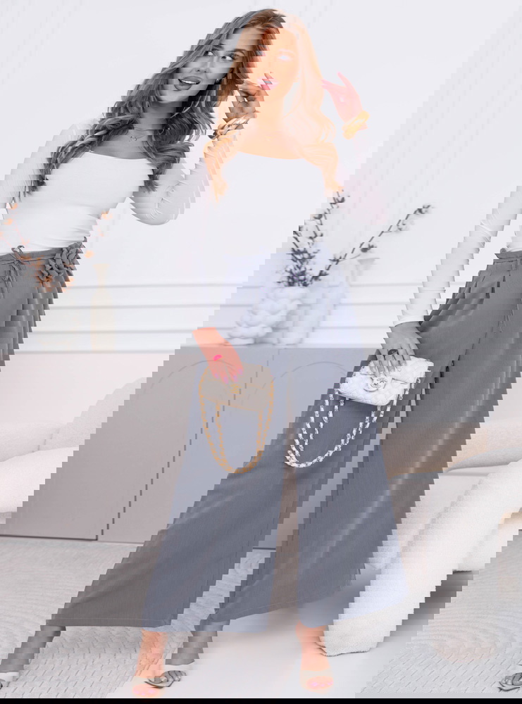 To model, który daje duże możliwości stylizacyjne i nie narzuca jednego kierunku. Szary kolor świetnie łączy się zarówno z jasnymi, jak i mocniejszymi odcieniami. Pasek podkreśla talię i dodaje całości wykończenia, dzięki czemu stylizacja wygląda kompletnie. To spodnie, które możesz nosić na wiele sposobów i zawsze będą wyglądać dobrze.