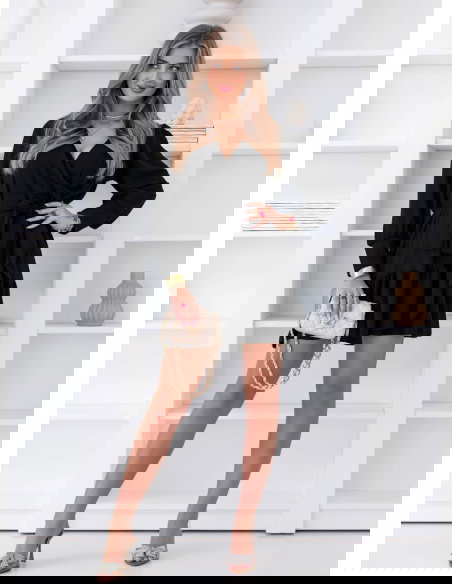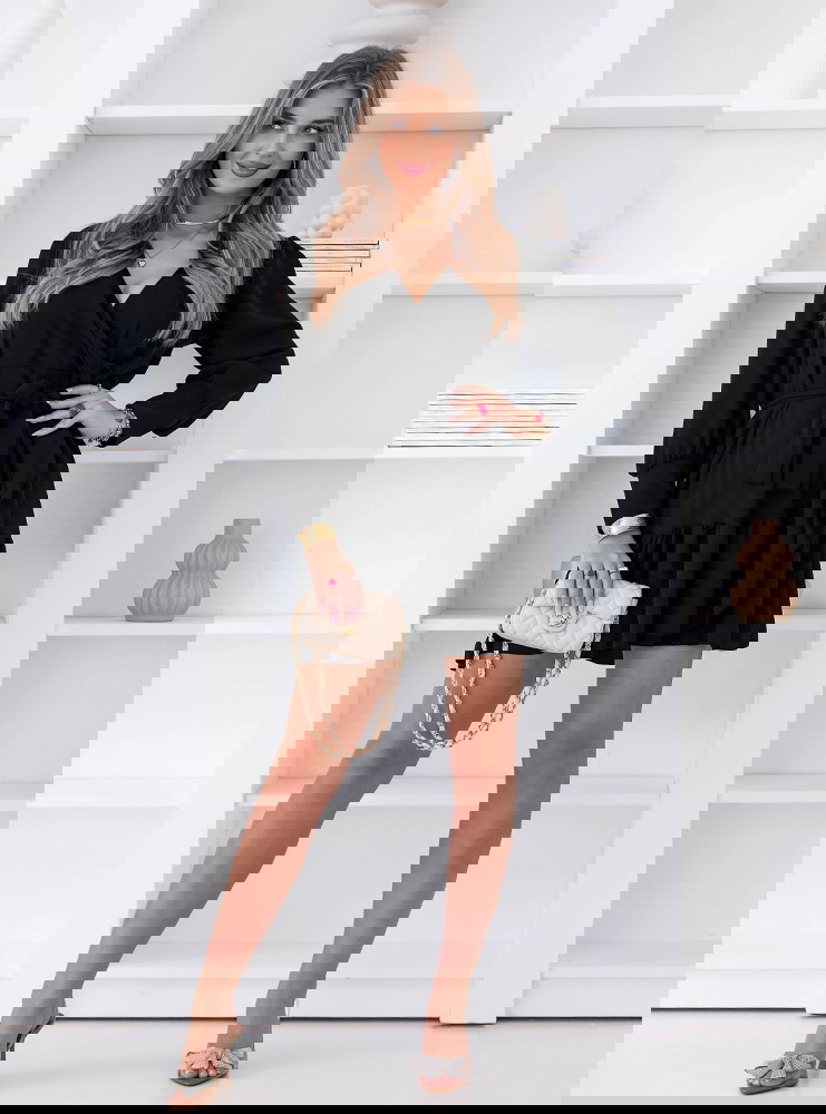 Czarna sukienka z przekładanym dekoltem Rajhimsa to model, który zawsze wygląda dobrze i pasuje na wiele okazji. Klasyczna czerń nadaje jej eleganckiego charakteru, ale krój sprawia, że całość nie jest ciężka. Przekładany dekolt ładnie układa się na sylwetce i podkreśla jej linię. Wiązanie w talii pozwala dopasować fason i zaznaczyć proporcje. Dół wykończony falbaną dodaje lekkości i sprawia, że sukienka dobrze wygląda w ruchu. Długie rękawy wprowadzają balans i nadają całości bardziej dopracowanego efektu. Materiał miękko się układa i zapewnia komfort noszenia. To model, który sprawdzi się zarówno na co dzień, jak i na wyjścia.
