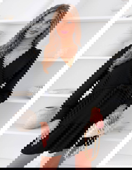 Czarna sukienka z przekładanym dekoltem Rajhimsa