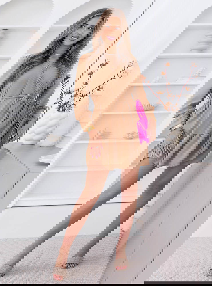 To sukienka, która daje efekt spójnej, przemyślanej stylizacji bez wysiłku. Kolor łatwo łączy się z dodatkami i daje dużą swobodę w tworzeniu różnych zestawów. Dzięki wiązaniu możesz dopasować ją do siebie i uzyskać idealny efekt. To propozycja dla osób, które lubią stonowaną elegancję w lekkim wydaniu.
