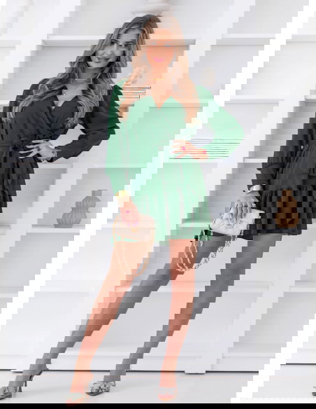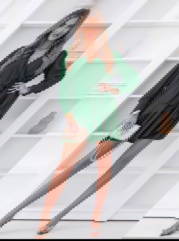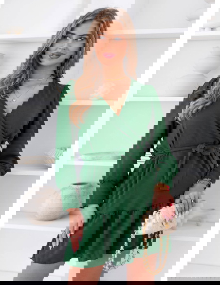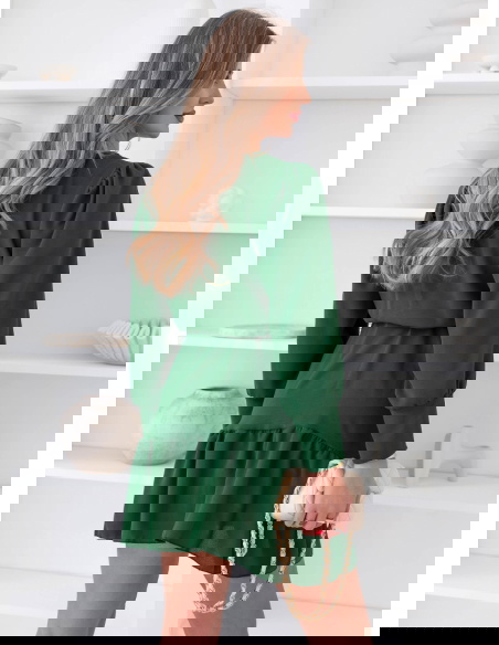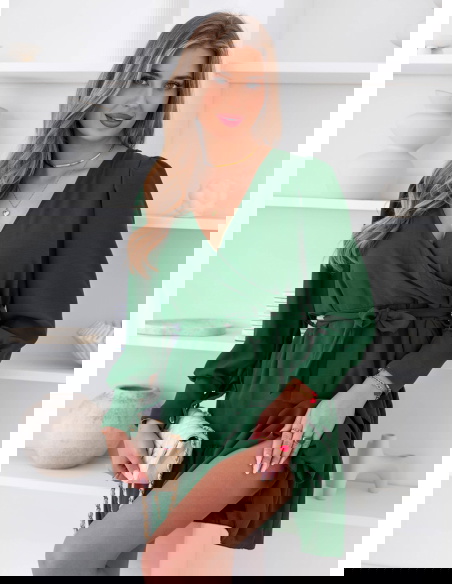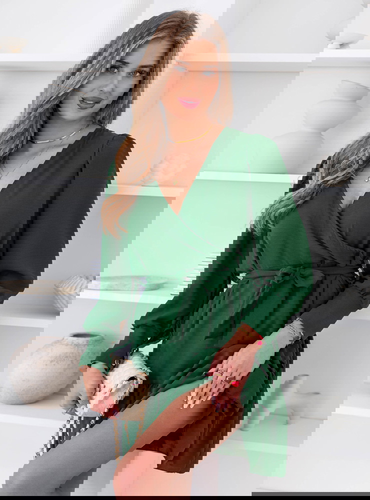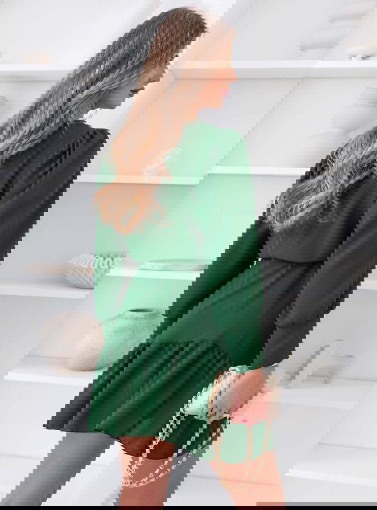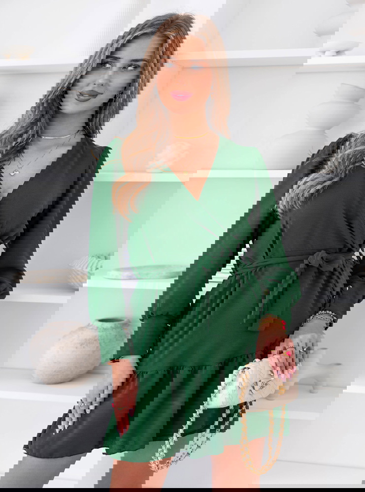 Sukienka z przekładanym dekoltem Rajhimsa - butelkowa zieleń to model, który wyróżnia się głębokim kolorem i kobiecym krojem. Butelkowa zieleń nadaje stylizacji eleganckiego, bardziej wyrazistego charakteru, a jednocześnie pozostaje bardzo stylowa. Przekładany dekolt ładnie układa się na sylwetce i subtelnie ją podkreśla. Wiązanie w talii pozwala dopasować fason i zaznaczyć proporcje. Dół z falbaną dodaje lekkości i sprawia, że sukienka dobrze wygląda w ruchu. Długie rękawy równoważą całość i nadają jej bardziej dopracowanego wykończenia. Materiał miękko opada i zapewnia komfort noszenia. To model, który sprawdzi się zarówno na co dzień, jak i na bardziej eleganckie wyjścia.