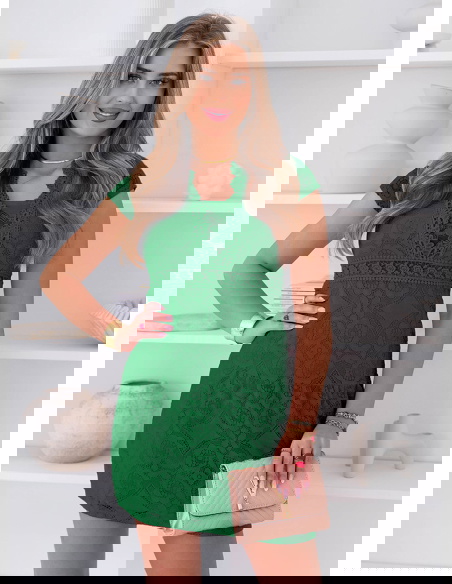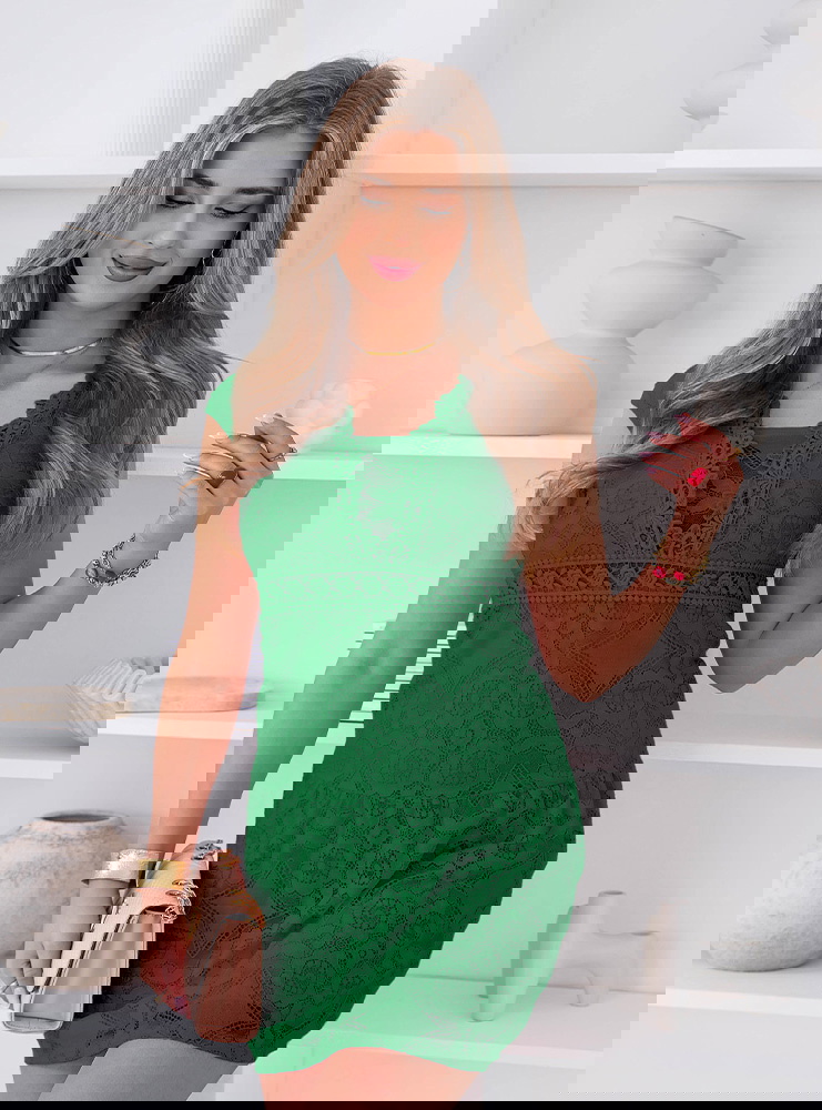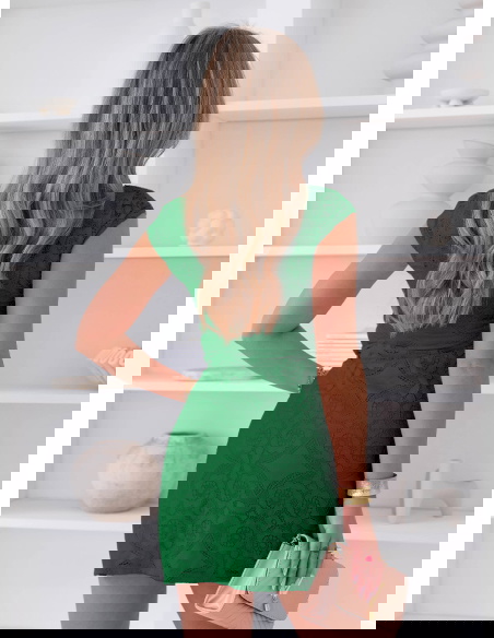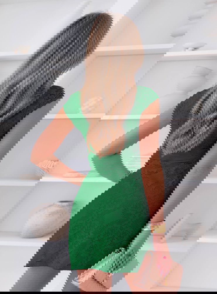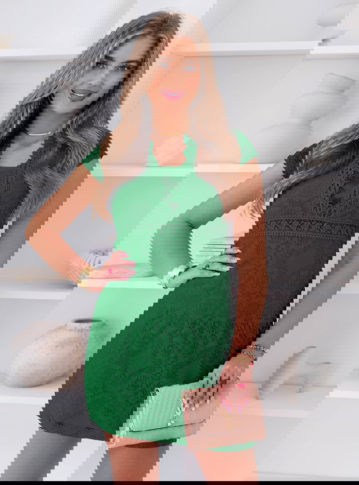 Koronkowa sukienka mini z ozdobnym dekoltem Ceamynnie - butelkowa zieleń