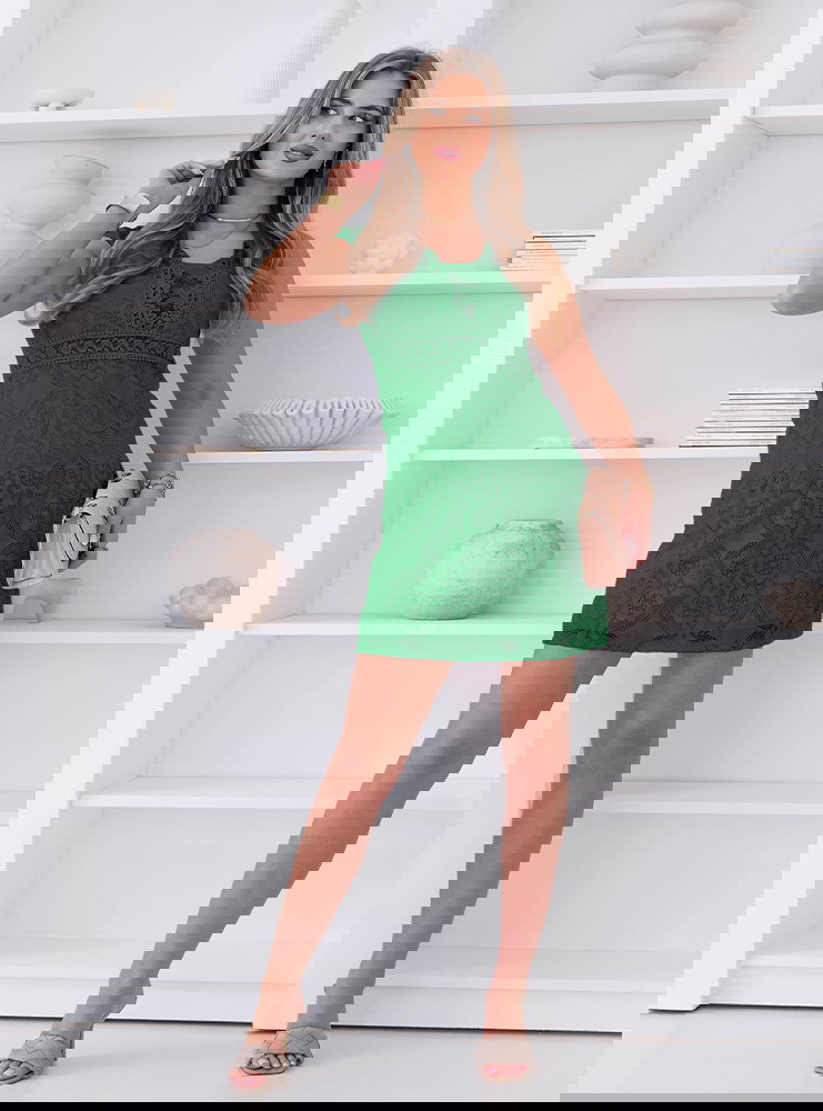 Koronkowa sukienka mini z ozdobnym dekoltem Ceamynnie - butelkowa zieleń to model, który wyróżnia się kolorem i dopracowanym detalem. Butelkowa zieleń nadaje jej głębi i sprawia, że całość wygląda elegancko, ale nadal świeżo. Koronkowy materiał pięknie układa się na sylwetce i podkreśla kobiecy charakter. Ozdobny dekolt przyciąga uwagę i nadaje całości wyjątkowego wykończenia. Krótka długość dodaje lekkości i sprawia, że sukienka dobrze wygląda w ruchu. Fason subtelnie podkreśla sylwetkę, nie tracąc przy tym na wygodzie. To model, który świetnie sprawdzi się na wyjścia i specjalne okazje. Całość prezentuje się stylowo bez potrzeby wielu dodatków.