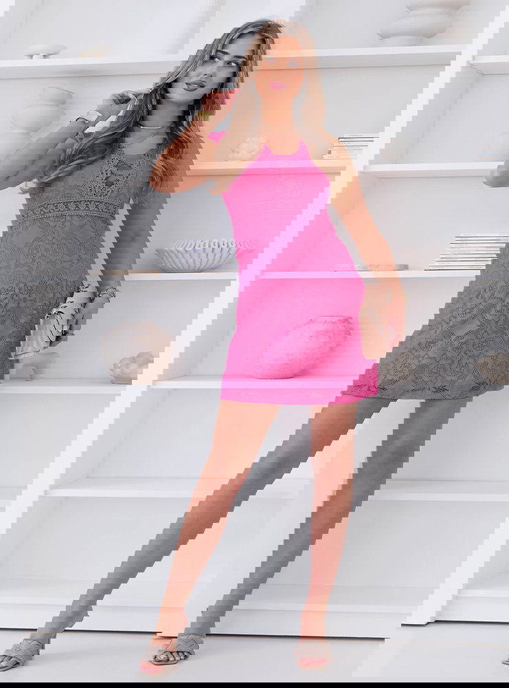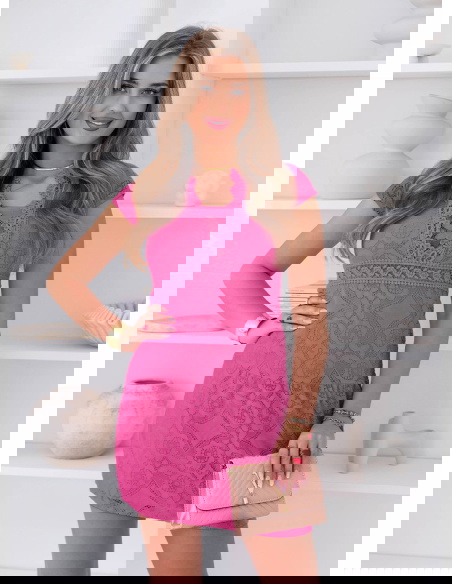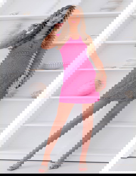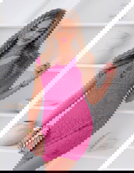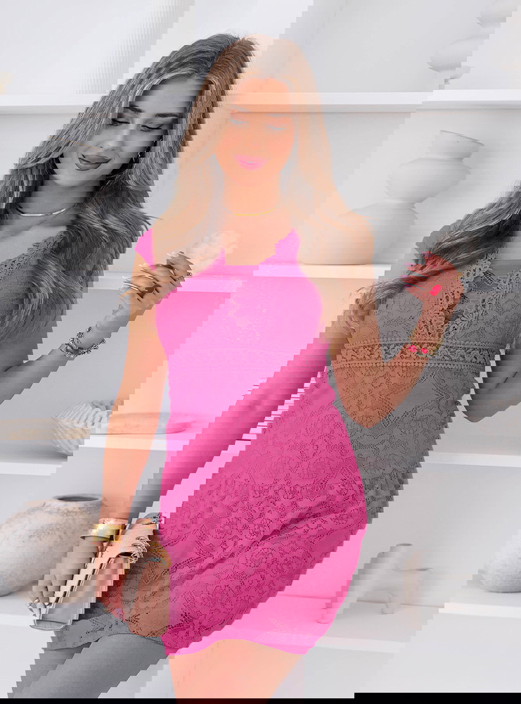 Koronkowa sukienka mini z ozdobnym dekoltem Ceamynnie - fuksja to model, który od razu przyciąga uwagę intensywnym kolorem i wyrazistym detalem. Fuksjowy odcień dodaje energii i sprawia, że stylizacja nabiera charakteru. Koronkowy materiał pięknie układa się na sylwetce i podkreśla jej kobiecy wygląd. Ozdobny dekolt wyróżnia całość i przyciąga wzrok, nadając sukience wyjątkowego wykończenia. Krótka długość dodaje lekkości i sprawia, że model świetnie prezentuje się w ruchu. Fason subtelnie podkreśla sylwetkę, pozostając jednocześnie wygodnym w noszeniu. To sukienka, która dobrze sprawdzi się na wyjścia, kiedy chcesz wyglądać efektownie. Całość robi wrażenie bez potrzeby wielu dodatków.