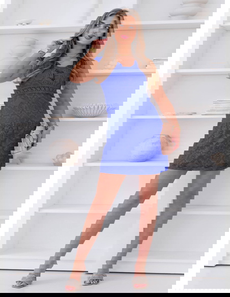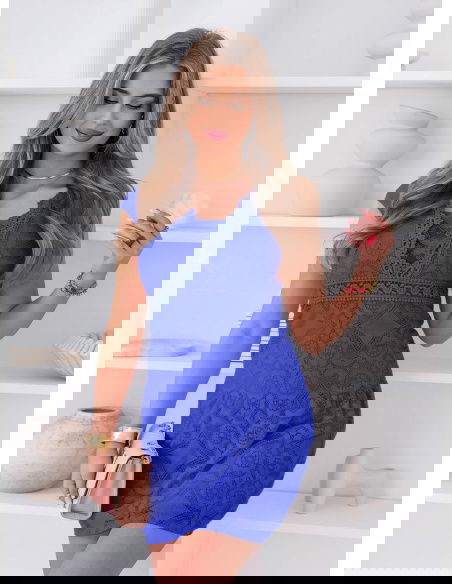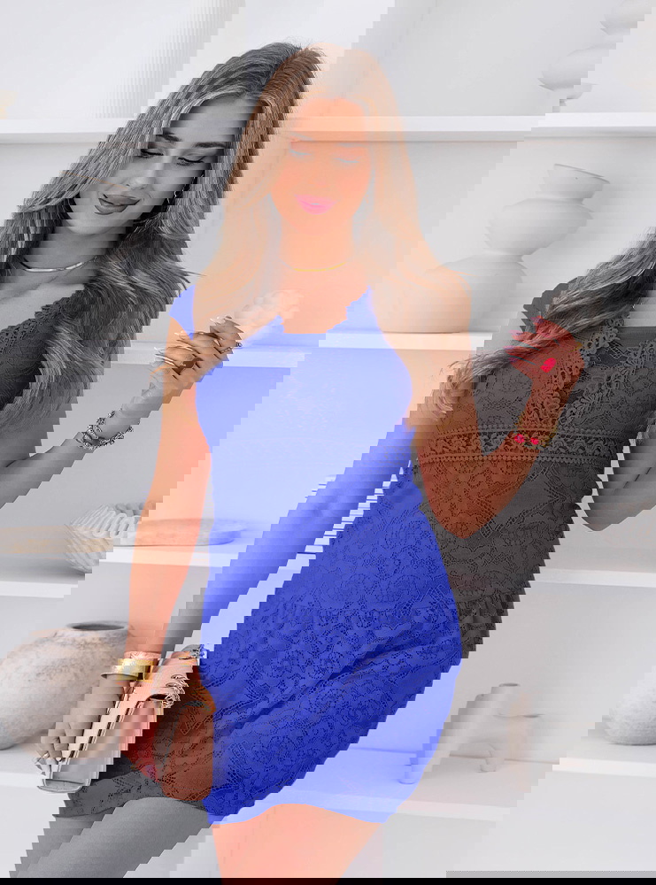 Chabrowa koronkowa sukienka mini z ozdobnym dekoltem Ceamynnie to model, który wyróżnia się intensywnym kolorem i dopracowanym detalem. Chabrowy odcień przyciąga uwagę i nadaje stylizacji świeżości oraz wyrazistości. Koronkowy materiał tworzy ciekawą strukturę i podkreśla kobiecy charakter sukienki. Ozdobny dekolt stanowi mocny akcent i dodaje całości eleganckiego wykończenia. Krótka długość sprawia, że model wygląda lekko i świetnie układa się w ruchu. Fason delikatnie podkreśla sylwetkę, zachowując komfort noszenia. To sukienka, która sprawdzi się na wyjścia i okazje, kiedy chcesz się wyróżnić. Całość prezentuje się stylowo bez potrzeby wielu dodatków.