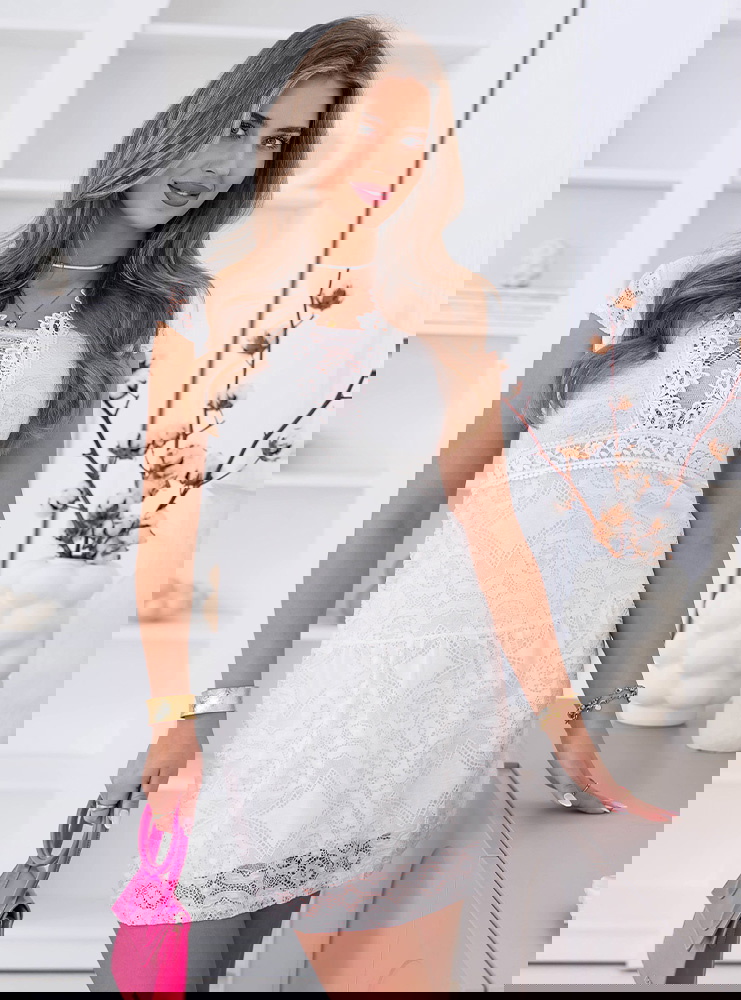 Biała koronkowa sukienka mini z ozdobnym dekoltem Ceamynnie to model, który łączy lekkość koloru z kobiecym, dopracowanym detalem. Biały odcień nadaje stylizacji świeżości i sprawia, że całość wygląda bardzo delikatnie. Koronkowy materiał tworzy subtelną strukturę i pięknie układa się na sylwetce. Ozdobny dekolt przyciąga uwagę i dodaje całości wyjątkowego wykończenia. Krótka długość sprawia, że sukienka wygląda lekko i świetnie prezentuje się w ruchu. Fason delikatnie podkreśla sylwetkę, zachowując wygodę noszenia. To model, który idealnie sprawdzi się w cieplejsze dni i na różne okazje. Całość wygląda świeżo, kobieco i bardzo stylowo.