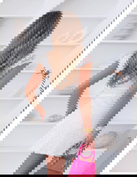 To sukienka, która daje efekt lekkości i nie potrzebuje wielu dodatków. Koronka dodaje jej elegancji, a jasny kolor sprawia, że stylizacja wygląda czysto i świeżo. To propozycja dla osób, które lubią delikatne, ale wyraziste formy. Wystarczy dobrać dodatki i całość jest gotowa.