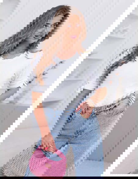 Biała prążkowana bluzka z krótkim rękawem Isadorinella to model, który sprawdza się zawsze, niezależnie od okazji. Biały kolor nadaje stylizacji świeżości i sprawia, że całość wygląda lekko i czysto. Prążkowana struktura materiału dodaje subtelnego charakteru i przełamuje prosty fason. Krótki rękaw z podwinięciem i delikatnym zapięciem wprowadza drobny detal, który wyróżnia bluzkę. Fason dobrze układa się na sylwetce i zapewnia komfort noszenia przez cały dzień. To model, który świetnie odnajdzie się w codziennych stylizacjach. Łatwo zestawisz go zarówno z jeansami, jak i bardziej eleganckimi elementami. To klasyka, która zawsze wygląda dobrze.
