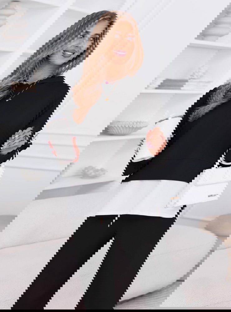 Czarny komplet dresowy bluza z kapturem i spodnie Madaleine to model, który stawia na wygodę w bardziej dopracowanym wydaniu. Czerń nadaje całości klasycznego charakteru i sprawia, że komplet wygląda schludnie i uniwersalnie. Bluza z kapturem ma luźniejszy fason, który dobrze układa się na sylwetce i daje swobodę ruchów. Kontrastowy dół bluzy przełamuje całość i dodaje jej nowoczesnego akcentu. Spodnie mają wygodny krój, który sprawdza się zarówno na co dzień, jak i w bardziej casualowych stylizacjach. Całość tworzy spójny zestaw, który możesz nosić razem lub osobno. Materiał jest przyjemny w noszeniu i dobrze sprawdza się przez cały dzień. To komplet, który łączy prostotę z modnym wyglądem.